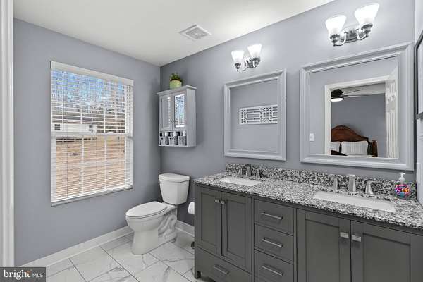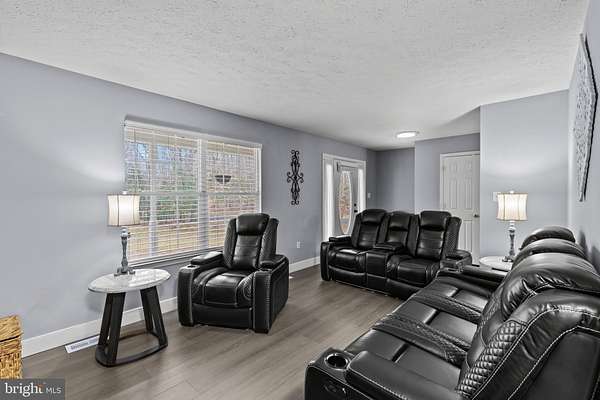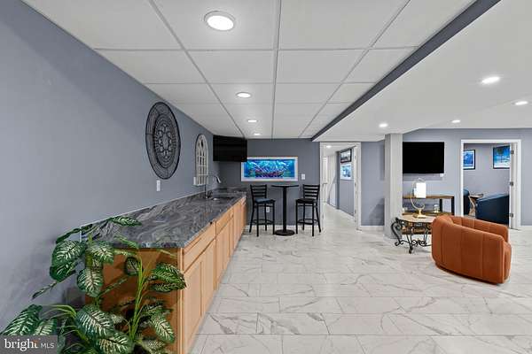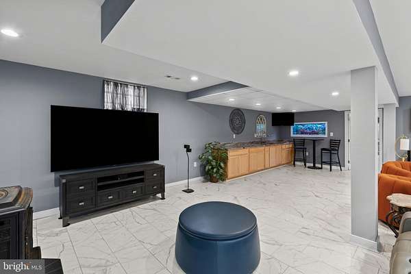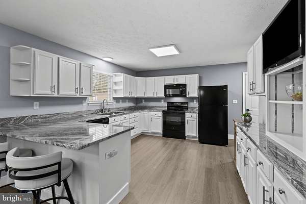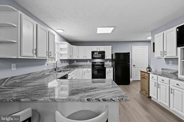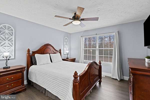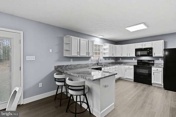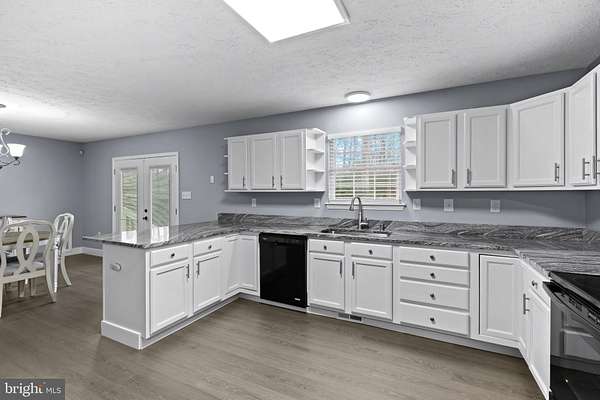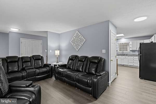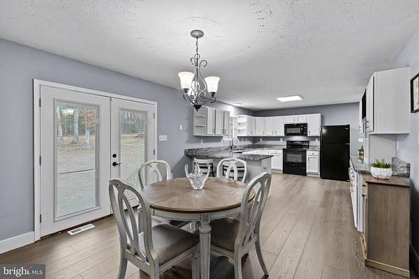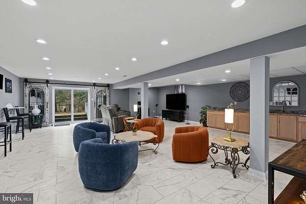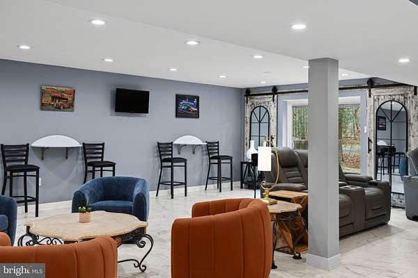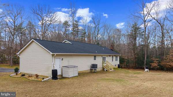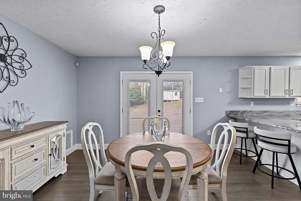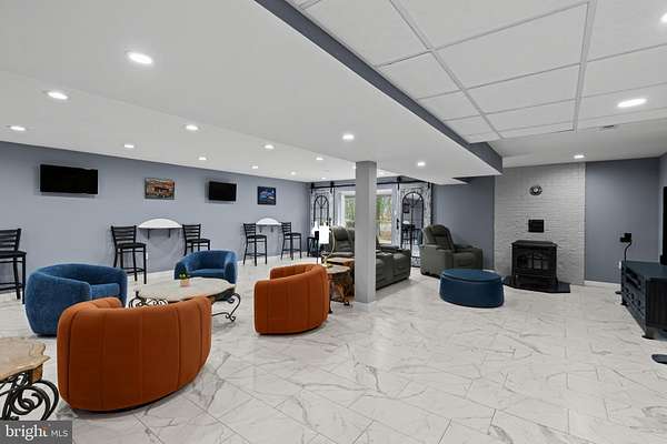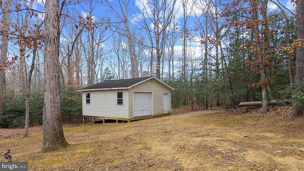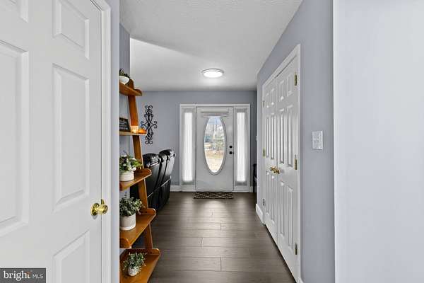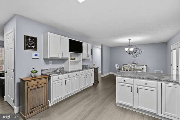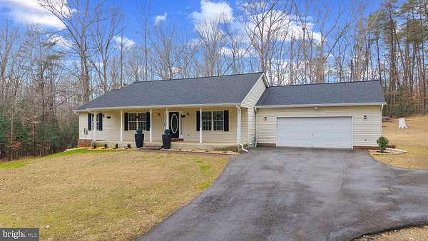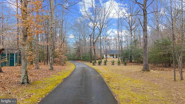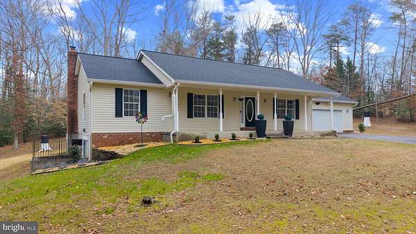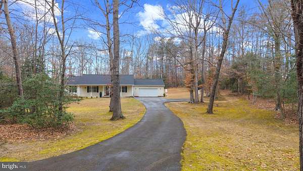 Inviting rancher residence in impeccable condition offering 3 bedrooms, 3 bathrooms, 2,329 finished square feet, and a 3-car garage, set on over 3 tranquil acres in peaceful Gallant Green Woods. A long, tree-lined private driveway leads to the home, where a quaint front porch welcomes you inside. Designed for the ease of one-level living, the traditional interior floor plan features recently installed luxury vinyl tile flooring throughout the foyer, a spacious living room, a beautifully updated kitchen, and a sunlit dining area. The expansive eat-in kitchen is well-appointed with upgraded granite countertops, white cabinetry, sleek black appliances, a breakfast bar, French door to rear yard and a cozy breakfast nook with exterior access, offering ample space for everyday dining and entertaining. Continuing on the main level are three bedrooms and two updated bathrooms, including the primary suite with a private spa-inspired ensuite bath featuring a dual sink vanity and a glass-enclosed shower. One of the additional bedrooms offers flexibility and could also serve as a home office. 5" Baseboards. The lower level expands the living space with a beautifully finished walk-out family room showcasing an oversized wet bar w/granite and a white brick-accented area with pellet stove hookup, Recessed lighting, white porcelain tile flooring, 3 built-in bar top tables along wall for stools, built-in fish tanks, multiple TV hookups, block glass windows, & walkup slider w/rolling barn doors. Through elegant French doors, a home gym or versatile bonus room provides additional flexibility. This level also includes an updated third full bathroom and a dedicated laundry room. The expansive wooded backyard offers privacy and open space, along with an additional detached one-car garage. Rain barrel irrigation set up for outdoor plant watering conveys Updates include Roof w/4" gutters - 3 yrs; HVAC - 2 yrs; Water heater - 8 yrs.