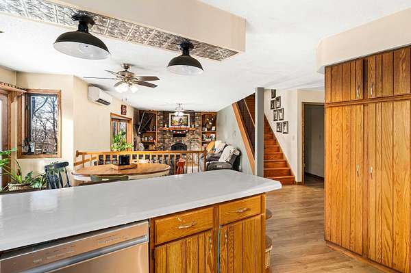 Welcome home to 4750 Mary Lane Dr. This solid and updated home located in Hermantown features one level living, 4 bedrooms, 3 bathrooms and a spacious 2+ attached garage. The upstairs of the home boasts a kitchen combined with the dining room, making this area easy for hosting and entertaining. This will lead into the living room, that features a wood burning fireplace and windows to watch wildlife roam throughout the yard. The main level will have 2 bedrooms, including a generous sized primary bedroom and 2 of the bathrooms. Upstairs will have 2 spacious bedrooms and a full bathroom. This home is situated on over 4.5 acres for privacy to enjoy Summer nights and a nice sloped yard for endless winter activities. Be sure to check this home out as it features country living but is so close to town, trails, shopping and so much more.