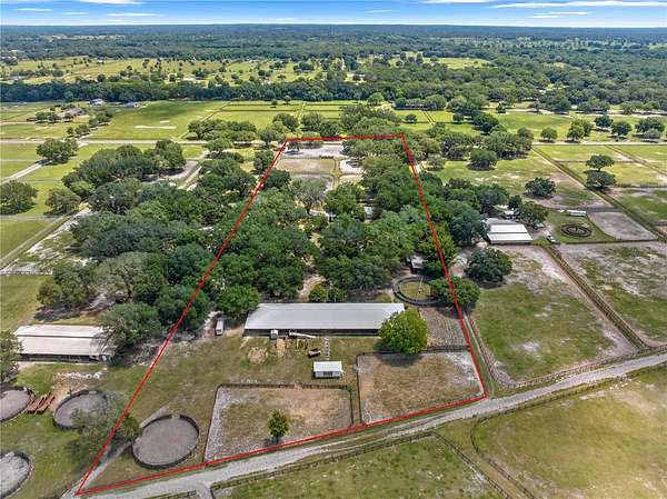 Welcome to the ultimate equestrian paradise nestled within a prestigious equine community. Situated on 10 picturesque acres, this property offers unparalleled amenities for both horse and rider. The recently remodeled 4-bedroom, 2-bathroom main house exudes modern charm, while the detached studio provides additional space for guests or employees. The centerpiece of this estate is the expansive main barn, boasting 22 stalls and a host of amenities including a half bath, tack and feed rooms, grooming bays, and wash racks. Additionally, a 4-stall mini barn adds versatility to accommodate various needs. With 8 paddocks dotting the landscape, horses have ample space to roam, including a dedicated 3-stall shed row within one paddock. Equine fitness is prioritized with the inclusion of a eurociser, ensuring year-round conditioning opportunities. Storage needs are met with shavings and manure facilities, ensuring a clean and organized environment. Plus, enjoy direct track access for training. Whether you're a seasoned equestrian or simply appreciate the beauty of country living, this horse farm offers an unparalleled blend of luxury, functionality, and natural beauty. Don't miss your chance to experience the epitome of equestrian living in this idyllic setting.