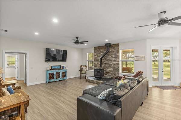 Welcome to your ideal rental retreat a beautifully updated 4 bedroom, 2 bathroom home nestled on approximately 4 acres in a stunning, serene location. Perfect for horse enthusiasts, this property includes 5 fully fenced paddocks, all included in the rent, offering a rare opportunity to bring your horses with you. The home has been thoughtfully updated in recent years, blending modern finishes with classic comfort. The open-concept layout flows effortlessly from the bright living area into a stylish, functional kitchen and dining space, perfect for entertaining or relaxing after a day outdoors. Step outside to the crown jewel of this home: a huge covered lanai that overlooks the peaceful acreage. Whether you're enjoying your morning coffee or hosting friends, this outdoor space adds an incredible bonus to your lifestyle.