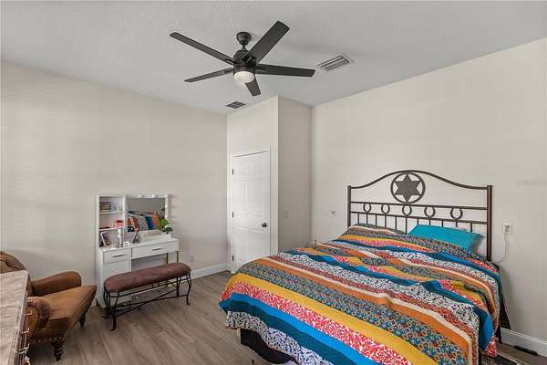 - Ceiling Fans(s), Eat-In Kitchen, High Ceilings, Open Floorplan, Primary Bedroom Upstairs, Split Bedroom, Stone Counters, Walk-In Closet(s)