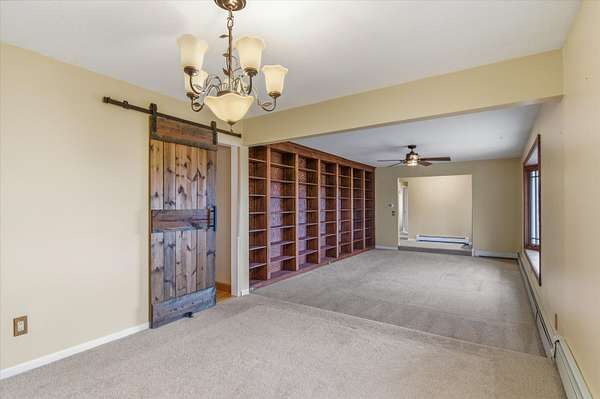 Endless possibilities await at this sprawling ranch set on over two peaceful acres, where thoughtful updates (including a new well pump) have already begun and there's still room to make it your own. In addition to the home's attached two-car garage, car enthusiasts, hobbyists, and handy homeowners will appreciate the impressive outbuilding with space for up to four vehicles. Inside, sliding barn doors welcome you into a generous living room filled with natural light from a large bay window and anchored by a wall of built-ins - perfect for displaying books or treasured collections. The adjacent dining room flows easily into the updated kitchen, where cherry cabinetry, granite countertops, and an island with cooktop create a functional and inviting space for everyday living and entertaining. The kitchen opens to a cozy family room featuring a wood-burning fireplace and doorwall to the back deck, making it the ideal setting for movie nights, game days, or gatherings with friends. On the east side of the home, you'll find three comfortable bedrooms, including a primary suite with its own beautifully updated full bath, while two additional bedrooms share a well-appointed hallway bathroom. The full basement offers incredible potential to nearly double your living space and already includes multiple defined areas, such as a secondary family room with fireplace and deck access, a spacious game room, laundry and utility area, and ample storage. Outdoors, enjoy the freedom and privacy of over two acres with room to garden, play, or simply unwind. The large outbuilding with concrete floor and dual overhead doors provides exceptional flexibility for storage, projects, or recreational use. Enjoy the best of both worlds with a serene, country-like setting just minutes from Target, Meijer, and the shopping and dining of Ann Arbor's west side. With easy access to downtown Ann Arbor, the University of Michigan, and downtown Saline - all within 20 minutes - this property offers space, versatility, and convenience in one unique package.