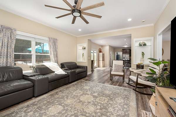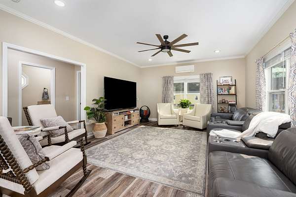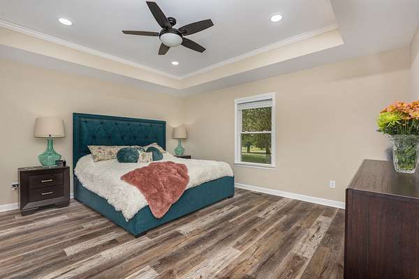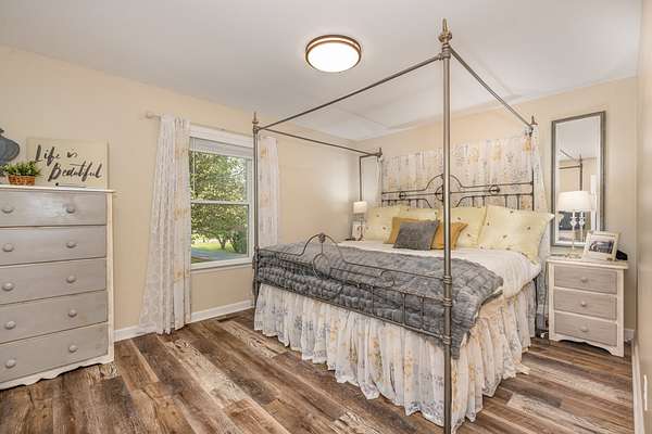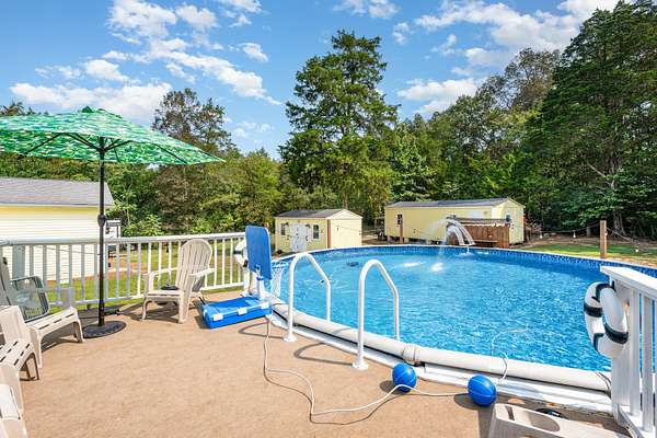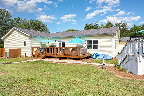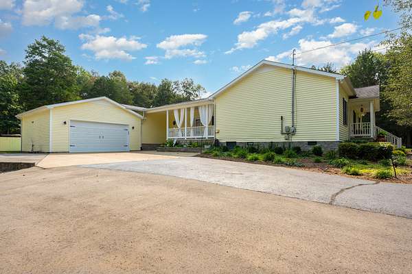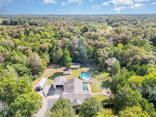 Beautifully updated 3BR/2.5BA home on 5 acres, improved inside and out with comfort, convenience, and quality in mind. Interior highlights include new flooring throughout, a renovated guest bath, updated blinds, new garbage disposal, and fresh paint that blends modern style with warm country charm. Major improvements include a fairly new roof, new water heater, plumbing updates, and other recent upgrades for lasting peace of mind. Curb appeal shines with refreshed landscaping and a widened driveway featuring 2,388 sq ft of new asphalt, extended parking perfect for a camper, and two culverts for improved drainage. The garage has a new insulated door and opener, acid-washed semi-gloss flooring, oversized storage cabinets, and even a custom border with a crush-and-run pad for trash containers. Motion-sensor LED lights add safety and style, while a new fenced area neatly conceals the HVAC unit. Outdoor living is exceptional, featuring a new 30' deluxe above-ground pool with all-new equipment--pump, filtering system, and glass debris exchange--plus expanded decking with new gate, indoor/outdoor carpet on the pool deck, and a shed for pool supplies. A double-sided dogwood fence matches the home's design, while a second shed provides even more storage. The inviting fire pit area includes Alabama river rock, limestone walkway steps, and landscape pavers to create the perfect gathering spot. The fully heated and cooled man cave is a true retreat: new insulated garage door, flooring, insulation, wall panels, three coats of ceiling paint with added insulation, gas line with stove, sink with water line, instant hot water heater, fridge, and a new wood-burning stove with fireproof flooring and tile. A smoke exhaust system and fire-retardant design make the space both safe and functional. Electrical upgrades include a direct-wired 50-amp camper box, a 220 line to the man cave, and a 220 generator backup system. This move-in ready property offers country privacy with modern updates!