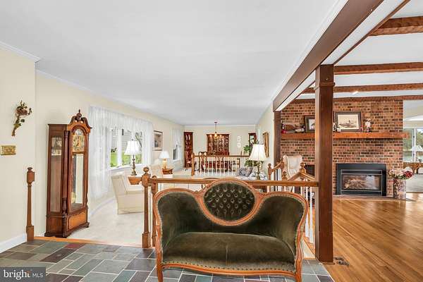 - Attic, Carpet, Ceiling Fan(s), Entry Level Bedroom, Exposed Beams, Family Room Off Kitchen, Formal/Separate Dining Room, Island Kitchen, Tub Shower Bathroom, Window Treatments, Wood Floors