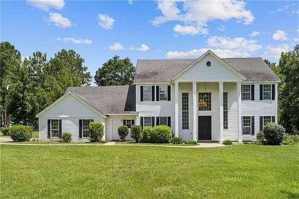 Welcome to the White House on Highway 10! You may have seen this house before, but you haven’t seen it like this. Set on 2.43 acres just outside Franklinton, this grand Georgian Colonial-style home blends classic Southern architecture with thoughtful modern updates. A marble foyer and dramatic double staircase set the tone, leading to spacious living and entertaining areas throughout. The newly renovated primary bathroom offers modern luxury, and new fixtures have been added throughout the home. The owner has a quote in hand for a brand-new roof, which will be paid for and put into motion at closing—covered within the purchase price. With fresh updates, traditional design, and room to roam, this is a rare opportunity to own a standout property in Washington Parish—reimagined for today.