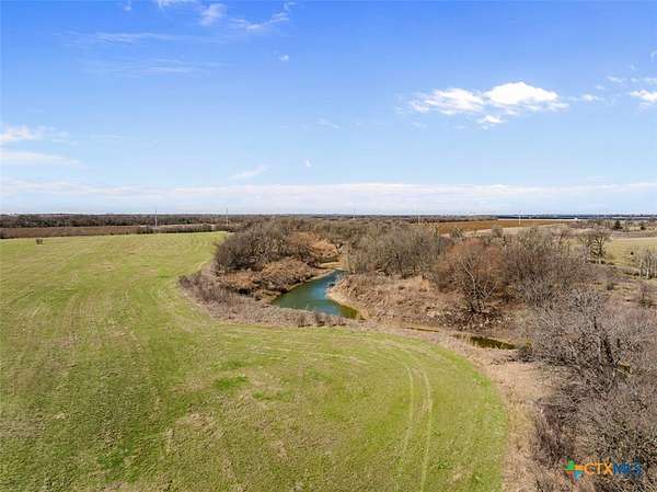 Pond Creek Ranch offers 117 acres of beautiful and functional land situated in the Waco, Temple, and Bryan triangle. This working ranch boasts over one mile of county road frontage, providing excellent access and potential for ranching, recreation, or future development. Pond Creek traverses the property and currently holds water, making it a valuable natural resource. Just south of the creek, a cozy three-year-old modular home provides comfortable living with scenic views of the surrounding landscape. The land features a mix of open pastures and mature trees, ideal for livestock, hunting, or creating a private retreat. Whether you are looking for a fully operational ranch, an investment opportunity, or a serene escape, Pond Creek Ranch offers endless possibilities. Pond Creek Ranch spans 117 acres of prime land with over a mile of county road frontage, offering an outstanding investment opportunity. Pond Creek runs east to west through the property, while a tributary flows north to south, ensuring a year-round water supply (rain dependent). The land is primarily covered in Coastal and Johnson grass, yielding 300+ hay bales annually. Additionally, the property features two ponds, one small and one large, providing extra water sources for livestock and wildlife. Improvements on the ranch include a three-year-old, 3-bedroom, 2-bath modular home spanning approximately 1,800 sq. ft., meticulously maintained and in excellent condition. Additionally, a medium-sized shop provides convenient tool and equipment storage. The property is fenced and cross-fenced with a combination of 4- and 5-strand barbed wire, all in medium/good condition. Milam County Water and the Heart of Texas Electric Co-op service Pond Creek Ranch.