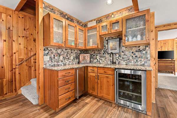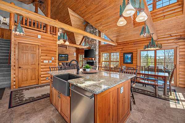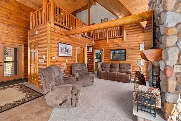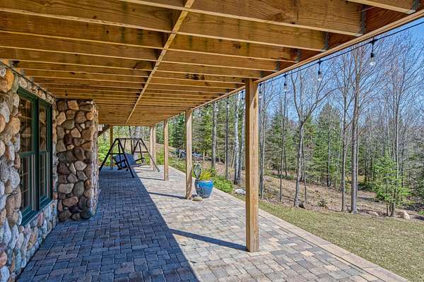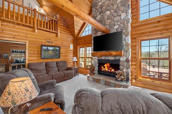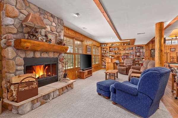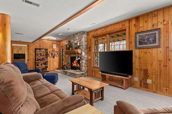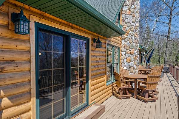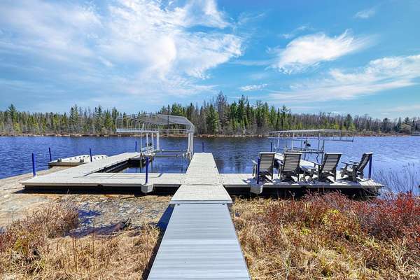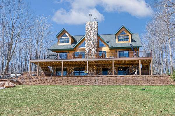 Nestled on the Sugar Camp Chain is this stunning, Northwoods lakeside home offering 201' of frontage on beautiful Chain Lake. It boasts year-round memorable relaxation & expansive lakeviews that are showcased throughout the home. 3+ bedroom, 3.5 bath chalet has undergone an extensive redesigned & renovation, incorporating modern amenities with a distinctive Northwoods aesthetic. Large windows flood the interior with natural light, seamless access to a spacious lakeside deck(composite), tastefully landscaped grounds & stone patio area. Every aspect of the property has been meticulously planned; premium kitchen w/ Wolf, Viking & sub-zero appliances, granite countertops, stone backsplashes, tongue & groove cathedral ceilings, log beams, 2 floor to ceiling wood burning fireplaces, walk-in tiled showers with stone flooring, finished walk-out lower level with rec room, wet bar w/ beverage cooler, Italian heated ceramic tile, hickory hardwood flooring, exercise room, loft and home theatre system. The exterior is enhanced with extensive lightening, 2.5 car insulated garage, new pier system, stained & resealed exterior, & new electrical and mechanicals. The property also includes the adjacent lot allowing for the blacktopped circular drive that provides convenient access to the home & lake while accommodating large gatherings. Situated in an ideal location between Eagle River, St. Germain & Rhinelander & easy access to snowmobile & ATV trails. Every detail both inside & out has been thoughtfully designed & planned to provide the quintessential lakefront style sought by many!