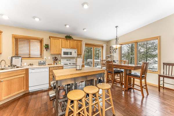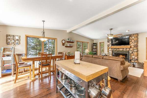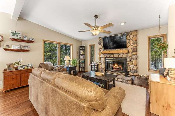 Escape to the Northwoods with this beautiful lakeside home offering the perfect blend of comfort, space, and natural surroundings. Situated on a full recreational lake with 775 feet of frontage, this three-bedroom, three-bath provides the ideal retreat for year-round living or a luxurious getaway. The main level features an open-concept layout with scenic views, a cozy fireplace, and convenient main-floor laundry. The primary suite includes a private bath and walk-in closet, while the nearly finished walk-out basement adds even more living space with an additional bathroom and plenty of extra storage. Enjoy the outdoors from the large west-facing deck. Additional highlights include a two-car attached garage, mudroom, paved driveway. Across the road, an optional 20+ acre parcel is available for purchase, offering endless opportunities for expansion. The pier comes with the purchase, so you can enjoy your lake from day one.