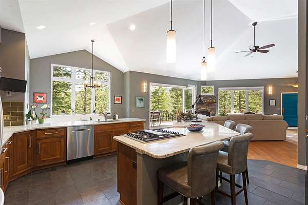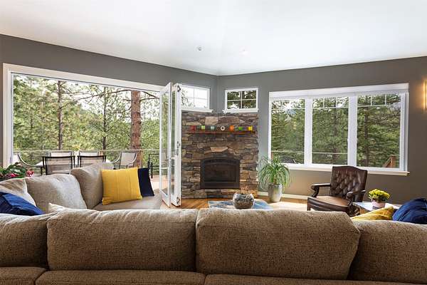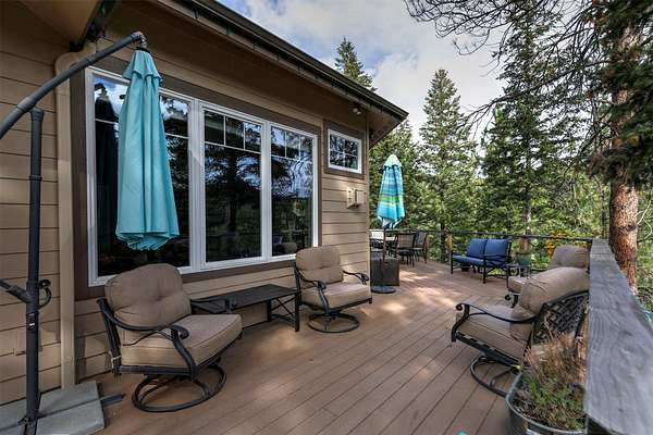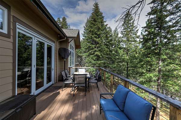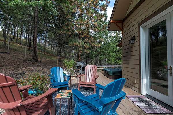 Tucked into sought-after Pattee Canyon, this beautifully remodeled 5-bedroom, 3-bathroom home offers the rare combination of convenience and true Montana tranquility. Just minutes from downtown Missoula, you'll feel a world away, surrounded by privacy, peaceful forested views, and the quiet that makes this area so special. Inside, the home welcomes you with vaulted ceilings, creating an open, airy feel throughout the main living space. The thoughtfully remodeled kitchen features updated finishes and a layout designed for both everyday living and entertaining. This home is packed with standout features that elevate it beyond the ordinary. A custom-built, temperature-controlled wine room provides the perfect space for collectors and entertainers alike. For pet lovers, a dedicated dog wash station adds convenience and practicality after a day on the nearby trails. Energy efficiency meets sustainability with solar hot water heat and solar panels for electricity helping reduce utility costs while supporting a more environmentally conscious lifestyle. The attached two-car garage offers plenty of room for vehicles, gear, and storage, along with dedicated workshop space, ideal for hobbies, projects, or additional functionality. Outdoor living is just as impressive. A wrap-around front deck overlooks the expansive 2.5-acre parcel and is accessible from both the front entry and stunning accordion-style folding glass doors, seamlessly blending indoor and outdoor living. Around back, a multi-level deck creates inviting spaces to gather, relax, and unwind, including a private area ready for your hot tub retreat. The spacious primary suite is a true sanctuary, complete with a walk-in closet, full en suite bathroom, and its own private balcony, perfect for morning coffee or evening sunsets. If you've been looking for space, privacy, and a move-in ready home in one of Missoula's most desirable areas, this Pattee Canyon home delivers all of that and more.