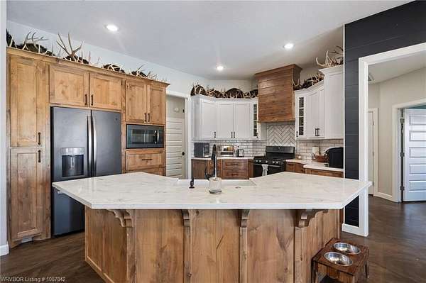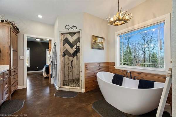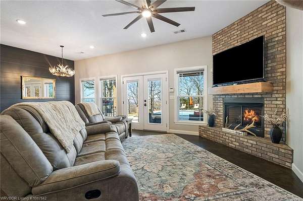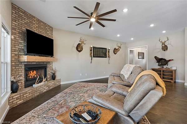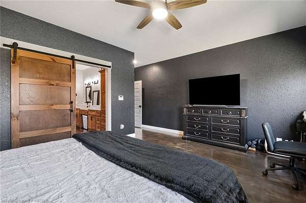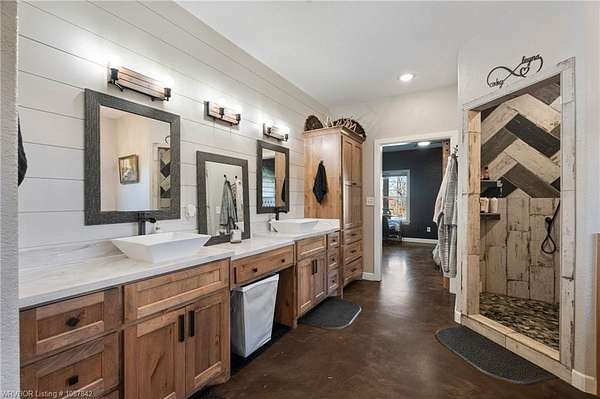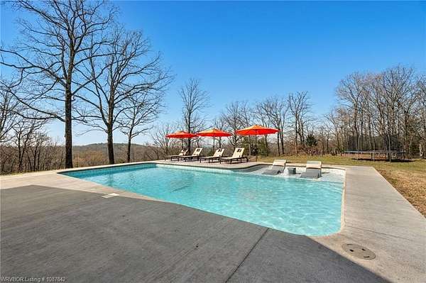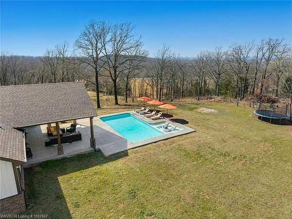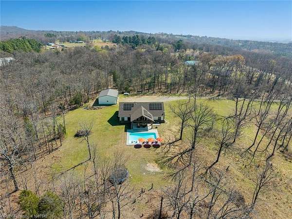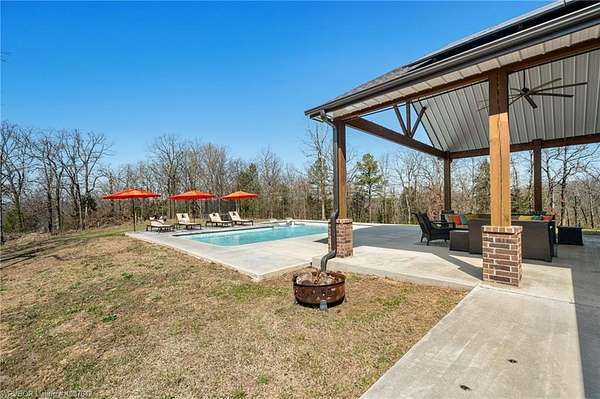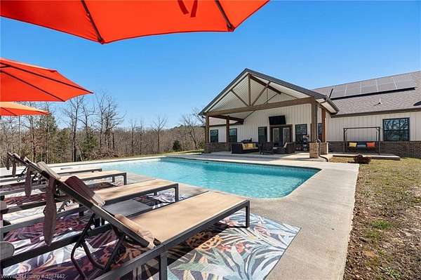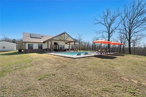 Luxury, efficiency, and the ultimate entertainer's setup-all on 5 beautiful acres! This 4 bedroom, 3 bath home features an open-concept kitchen, living, and dining area designed for both everyday living and hosting. The kitchen is thoughtfully designed with pull-out drawers, double pull-out spice racks, and a built-in pull-out trash system for added convenience. The layout offers two bedrooms connected by a Jack and Jill bathroom, plus an additional bathroom with both hallway access and private entry through a walk-in closet. The spacious primary suite is a true retreat, featuring a spa-like bathroom with a large soaker tub, double showerheads, and a seamless flow into an oversized walk-in closet that connects directly to the laundry room. Built with efficiency and comfort in mind, this home includes spray foam insulation, insulation in interior walls, LED lighting, a tankless propane water heater, propane fireplace, and a combination of electric and propane utilities. Solar panels with a locked-in electric rate for life add even more long-term value. Step outside to a massive covered patio with TV hookup, perfect for entertaining, overlooking a saltwater sport pool (5.5' depth in the center) with a shallow area for sunbathing and easy maintenance. A detached 3-car garage/shop provides plenty of space for vehicles, storage, or hobbies, all set on 5 peaceful acres offering privacy and room to roam. With 30-year shingles and high-end features throughout, this property truly blends comfort, functionality, and lifestyle in all the right ways.