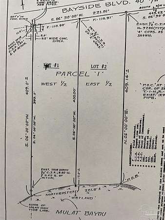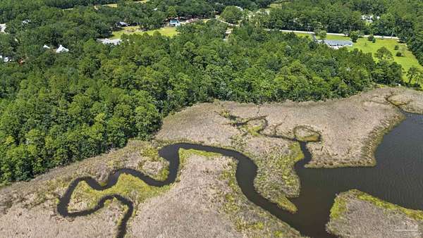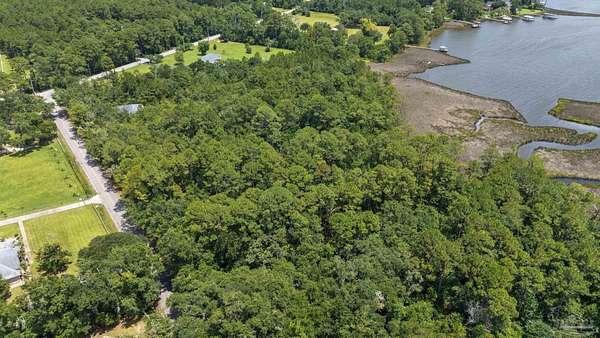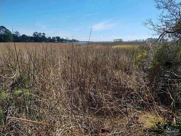 Come build your dream home on this beautiful 2+acre waterfront lot! This gem stretches over 200 ft on Mills Bayou, with a lovely view of Escambia Bay. Relax and take in stunning views of the marsh grass blowing in the breeze as you look to the south. Seller states at high tide the inlet is navigable in a small flat bottom boat or kayak. The land has a gradual slope of 11 ft up to the road. At one time the seller had the property cleared to look like a beautiful park with a little orchard and a big garden. This was after bringing in around 50 truckloads of fill dirt to level the land. So there should be no dips or valleys except where the equipment came through. It just needs some TLC again. A path has been cleared from the road to the water to get a better feel for the land and so you can access the water view. There are two old chain link fences with cement footing, one on either side of the property, beginning at the set back and going all the way to the water. There is also an old sailboat on the property that washed up during hurricane Ivan.