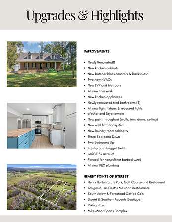 Very motivated seller! Take a look at this 5 bedroom 3 bath with a bonus room home, close to 3000 sq ft under heat and air but some pitched ceiling walls reduced the professional measurement to what's listed. What a remarkable remodel, breathing life back into this home for someone to enjoy for years to come. This home was remodeled from top to bottom including two new HVACs and a new well water filtration system, brand new kitchen including cabinetry, butcher block counters, deep sink and new stainless appliances. Inside you will find that all the floors, trim and paint are new, notice the new light fixtures and recessed lights plus red oak stair treads stained to match those lovely white oak look LVP floors. Don't miss the tiled bathrooms, they're stunning! There are 3 bedrooms and 2 bathrooms downstairs with 2 bedrooms and 1 bath up stairs as well as a bonus room! Plenty of space to spread out here inside and out! The pasture is fully fenced on all sides with a creek at the back with a few trees here and there for shade. There's also a 20x22 shop/garage with 3 roll up doors! The views from your back porch are breathtaking and the views from your front porch are nothing short of peaceful. This little neighborhood is just what you've been looking for if you've been searching for an exhale and enjoy seeing the occasional person trail riding horses up and down the roads as well as the perfect road to take an early morning or evening walk. Just minutes to all that Chapel Hill has to offer. Less than 5 minutes to the best gourmet coffee shops, quaint boutiques, diners, Brooks Grocery, Henry Horton State Park, kayak launch and Golf Course! 35 minutes to Franklin, Murfreesboro and Spring Hill or 55 minutes to Nashville! Talk about a dream, you will feel the sense of relaxation and close knit community when you enter this little town.