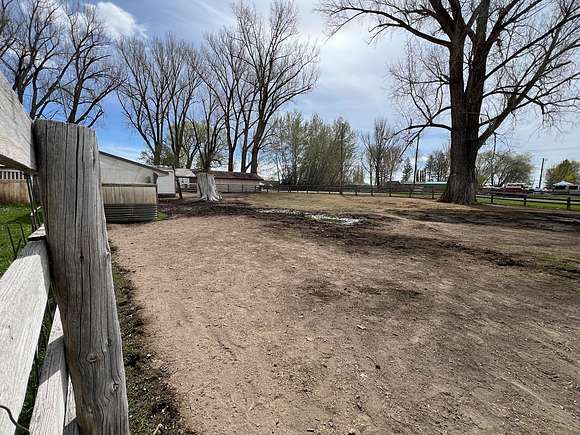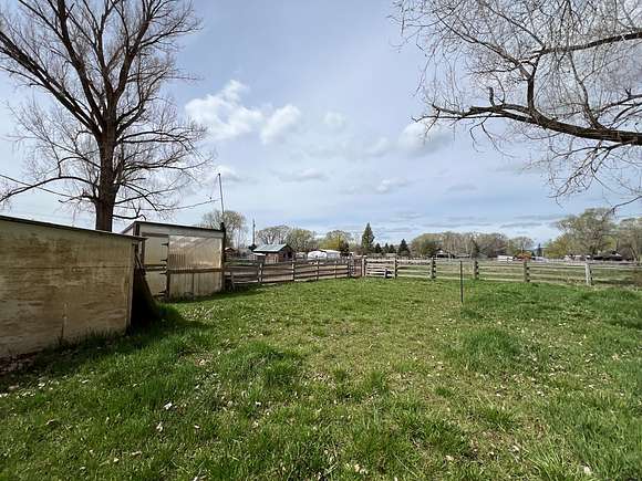 The 1.56-acre property is thoughtfully divided into four fenced pasture areas with post and pole rail fencing, suitable for livestock under the City of Burns livestock permit. Frost-free faucets and a small well with a submersible pump provide reliable water sources for irrigation and animals. The grounds are graced by large legacy trees and built-in flower bed planters, offering a secluded and serene environment at the edge of town. The combination of wood post, chain link, and welded wire fencing secures the perimeter. The property benefits from city water and sewer services along with power supplied by the Oregon Trail Electric Cooperative, ensuring modern conveniences alongside rustic appeal.