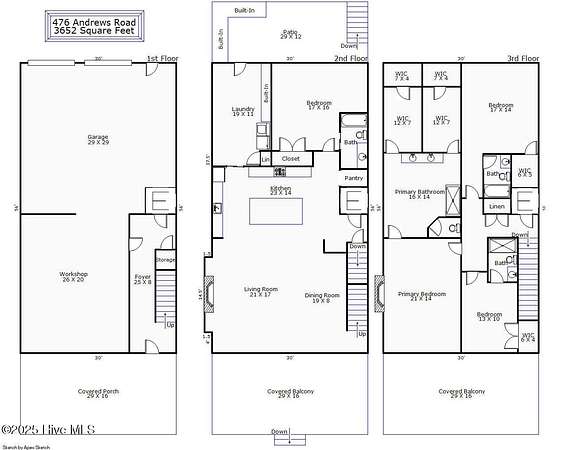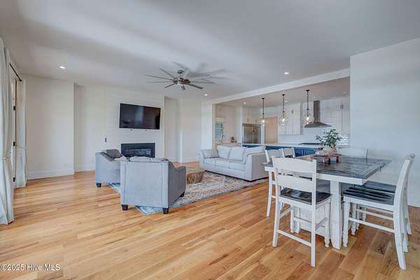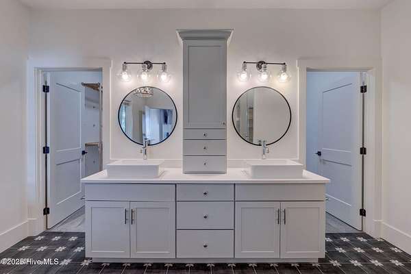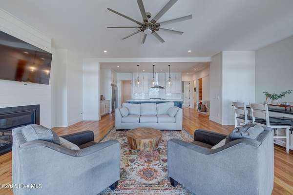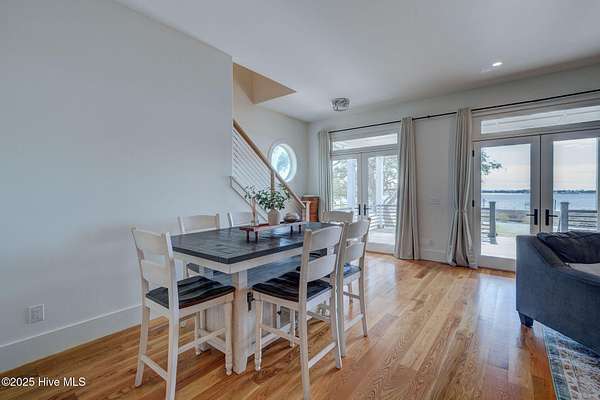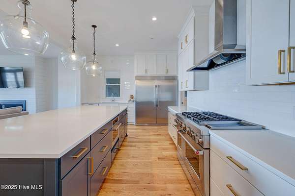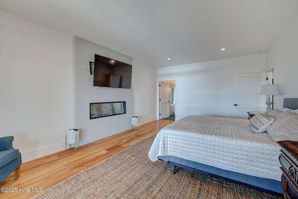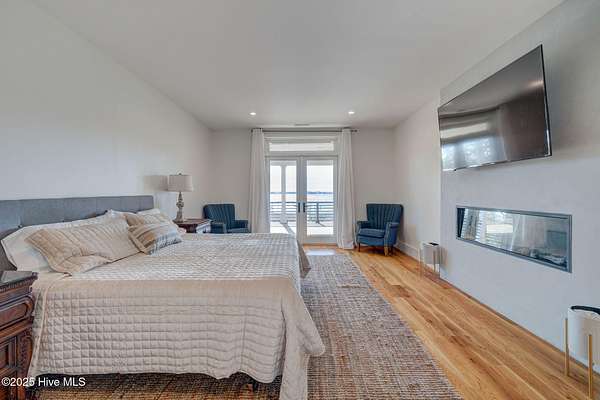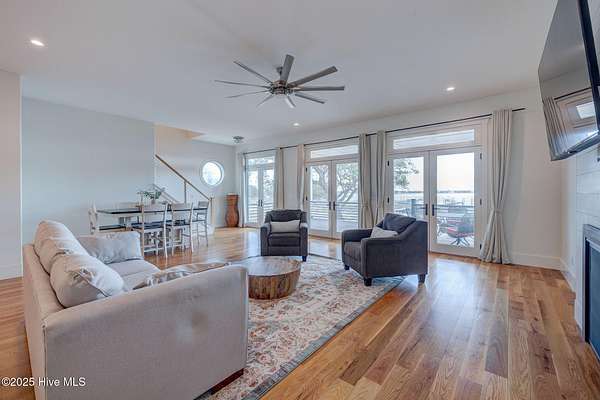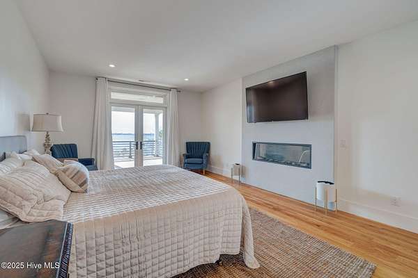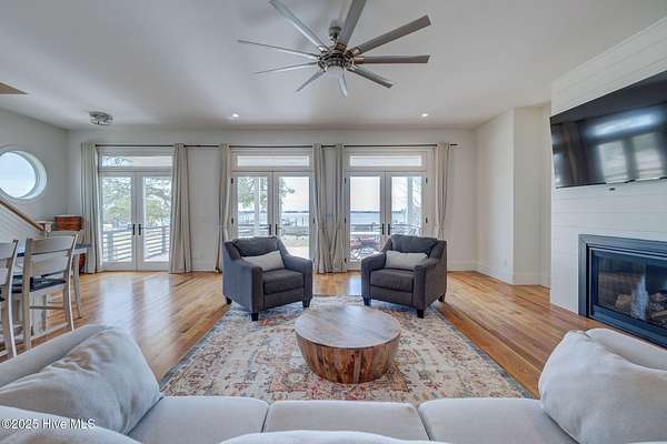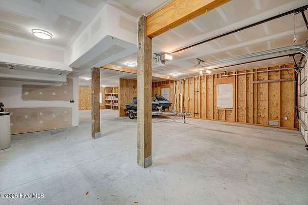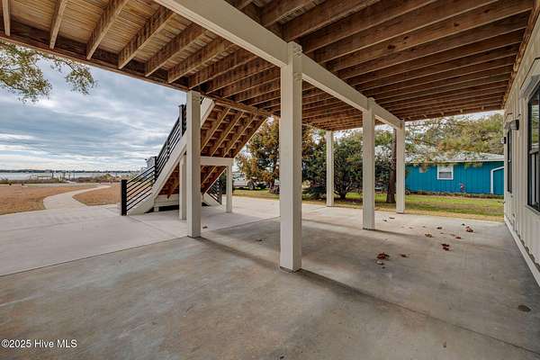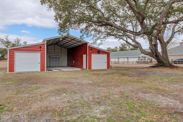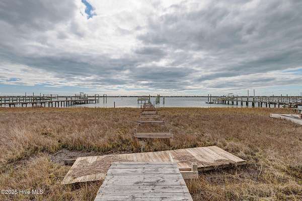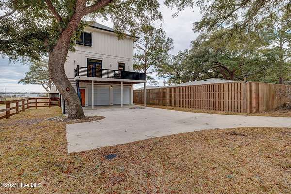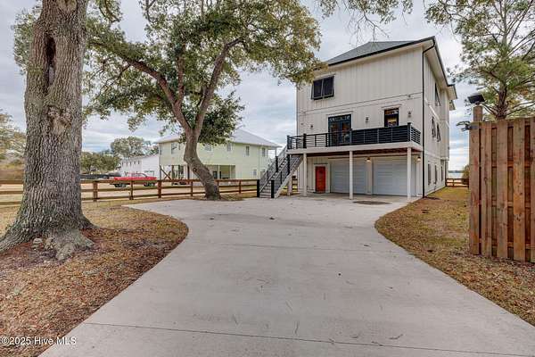 This meticulously crafted waterfront estate, built in 2020, spans 2.21 acres and offers sweeping views of the Intracoastal Waterway and Topsail Island. Located directly on the water, the property features a dock where you can enjoy seamless access to boating, fishing, and endless water activities right from your property. The spacious ground-level shop/garage includes a private elevator, providing direct access to the expansive, open-concept living space on the second floor. Ideal for entertaining, the gourmet kitchen is a chef's dream, equipped with a double oven, six-burner gas cooktop, and a full-size professional freezer and refrigerator. On the third floor, you'll find the luxurious master suite, complete with a cozy fireplace and breathtaking water views. Two additional bedrooms, each with its own ensuite bath and walk-in closet, ensure comfort and privacy for family or guests. Premium amenities abound throughout the home, including remote-controlled storm shutters, a whole-house generator, and an oversized utility/mudroom. The outdoor grilling station is perfect for al fresco dining, while the reinforced third-floor deck is ready to accommodate a hot tub for ultimate relaxation. For added convenience, a detached garage offers two fully enclosed spaces with 7-foot roll-up doors and a covered RV storage area equipped with 50-amp service. This one-of-a-kind property blends modern luxury with coastal charm, offering an exclusive lifestyle in a truly picturesque setting.