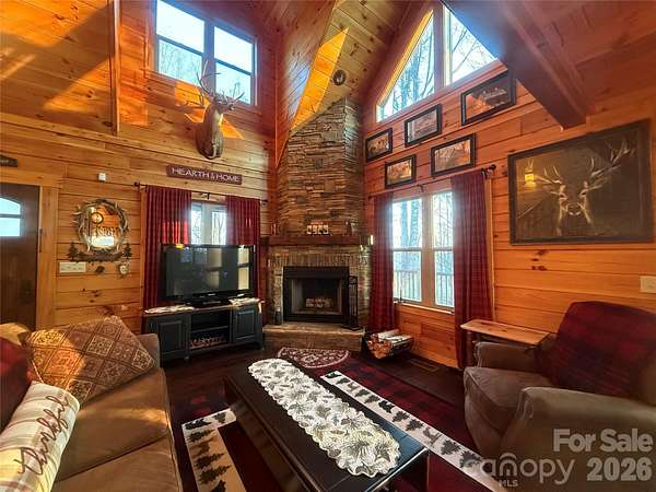 Welcome to your private mountain retreat at 476 Double Eagle Drive in Nebo, North Carolina-where breathtaking views, timeless craftsmanship, and peaceful living come together. * "Financing options may include 1099 loan programs designed for self-employed buyers, allowing qualification based on income deposits rather than traditional tax returns-opening the door for more flexible purchasing opportunities." This stunning three-level log cabin offers 3 bedrooms and 3 full baths, with a private bedroom suit on each level-perfect for hosting guests, multi-generational living, or maximizing short-term rental potential. Inside, you'll find warm, inviting interiors featuring tongue-and-groove wood walls, rich wood flooring, and a beautiful blend of rustic charm and modern comfort. The heart of the home is the floor-to-ceiling stone wood-burning fireplace, creating a cozy focal point for gathering on cool mountain evenings. The open-concept main level flows into a well-appointed kitchen with granite countertops and quality finishes, while bathrooms also feature granite surfaces and tile flooring for a polished, cohesive look. One of the home's most striking features is the dramatic triangular window in the loft, flooding the space with natural light and perfectly framing the surrounding woods and long-range mountain views-bringing the outdoors in year-round. The fully finished basement provides additional living or entertaining space, complete with access to its own private deck-ideal for guests or a separate retreat area. For those considering short-term rental potential, the home offers flexible sleeping arrangements that can comfortably accommodate up to 12 guests, with a sleeper sofa in the basement and a futon in the loft adding additional space for visitors Outdoor living is just as impressive, with: - A large wraparound deck perfect for entertaining or relaxing - A screened-in porch for enjoying the fresh mountain air without interruption - A lower-level deck offering even more space to unwind Set within a sought-after community, residents enjoy access to: - A scenic lake for kayaking and fishing - A refreshing community pool and hot tub - A welcoming changing room/bathroom/cabana - A peaceful, nature-filled setting It can be offered fully furnished, this home is truly turnkey-making it an exceptional opportunity for a full-time residence, vacation getaway, or income-producing investment. Conveniently located within easy driving distance to Charlotte, Asheville, and Hickory, you'll enjoy the perfect balance of seclusion and accessibility. Come experience mountain living at its finest-schedule your private showing today Listing agent is a friend and neighbor of the sellers.