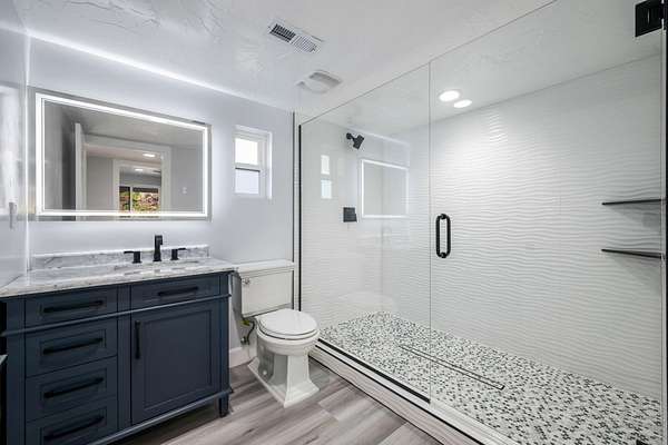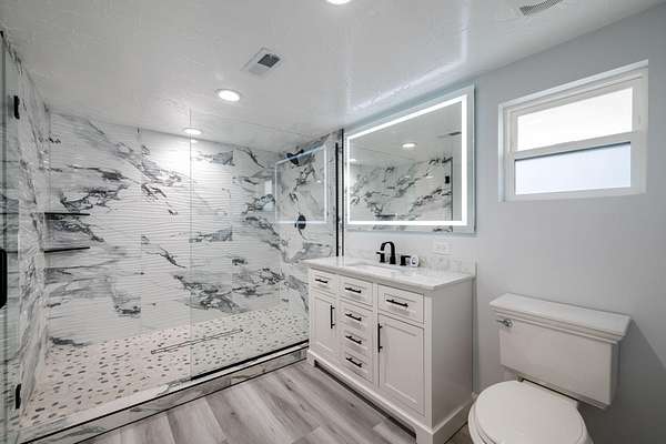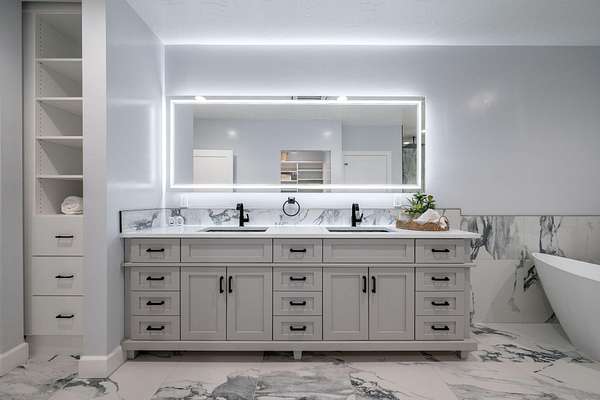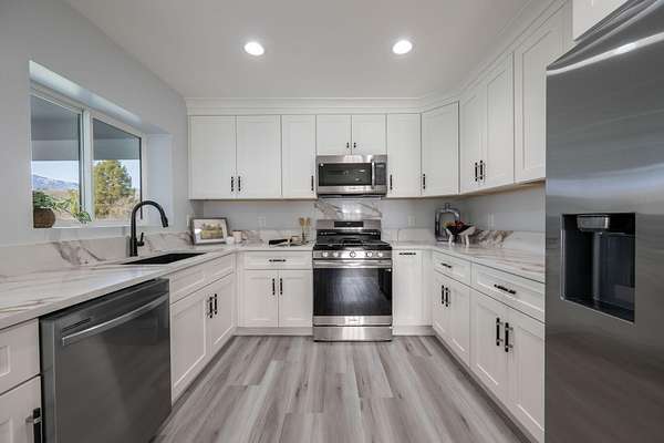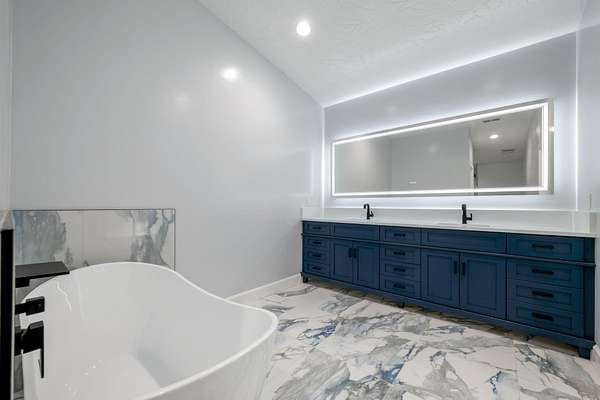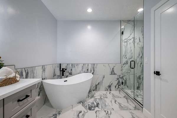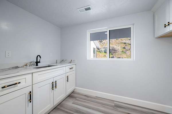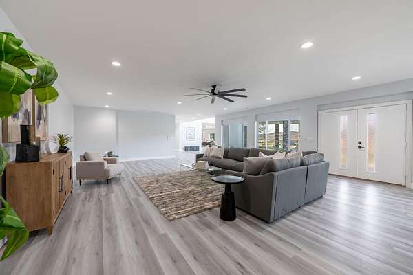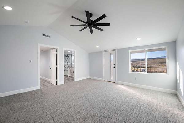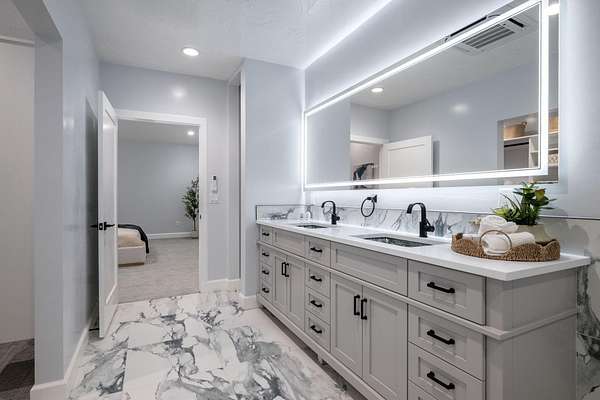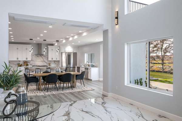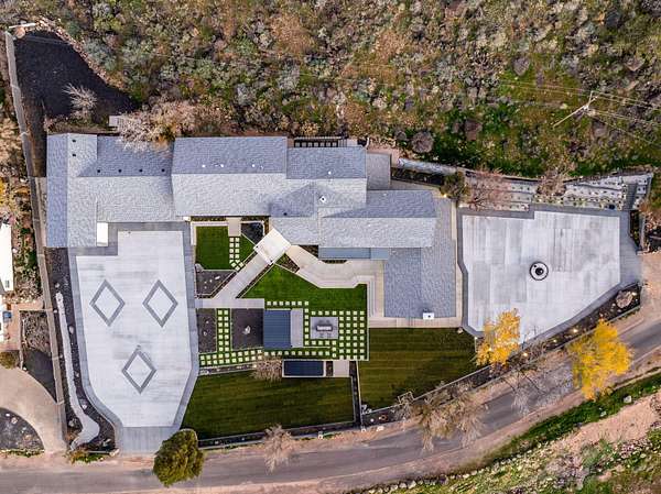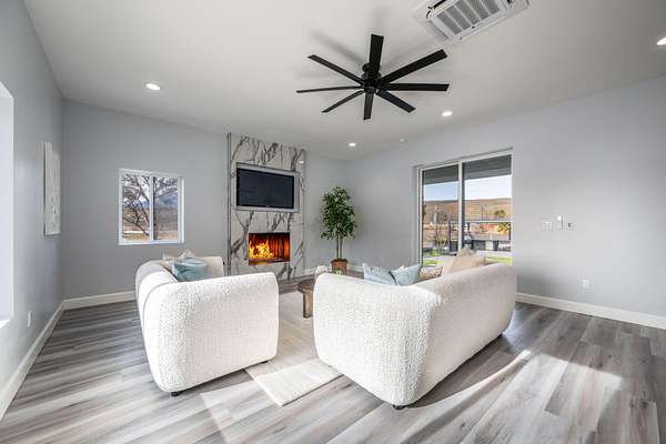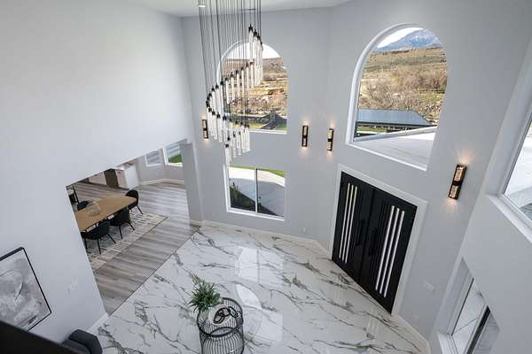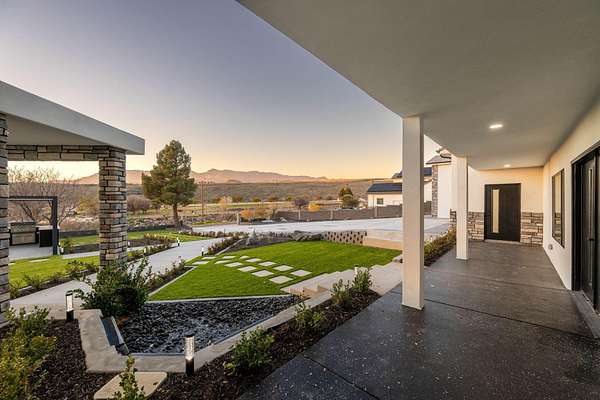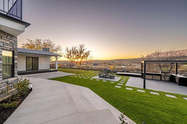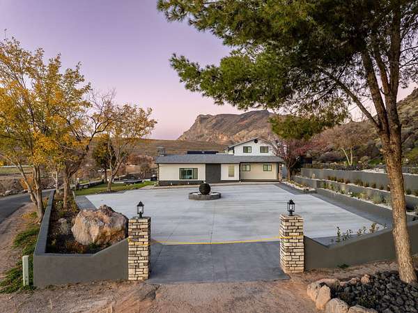 Welcome to a fully reimagined luxury estate, perfectly positioned against a stunning mountainside backdrop and enhanced by an additional parcel that protects forever-unobstructed red rock views. Every inch of this residence has been meticulously rebuilt with $1.2M+ in upgrades, creating a home that is as structurally impressive as it is visually breathtaking. A sweeping modern facade, dramatic two-story entry, and towering 20+ ft ceilings set an unforgettable tone the moment you arrive. Inside, sunlight cascades through oversized windows, illuminating polished marble-look flooring, striking lighting installations, and expansive living and gathering spaces designed for elegance, comfort, and grand-scale entertainment. The gourmet chef's kitchen is a showpiece, anchored by a bold black waterfall island with electrical outlets, full-slab marble-style backsplash, commercial range with dual ovens, dual dishwashers, and an oversized refrigerator. Custom cabinetry, a walk-in pantry, and a sleek wet bar elevate the kitchen into an entertainer's dream. With 6 oversized en-suite bedrooms, including the casita, and 2 half baths, this home is spacious and equipped for guests. Every suite features luxury finishes, custom built-ins, and spa-inspired bathrooms. Multiple designer fireplaces warm both the main living areas and the attached private casita, which includes its own full kitchen, full bathroom, living room, patio, entrance, and HVACperfect for guests or as a high-end rental. The finished basement presents limitless potential for a home theater, gym, wine cellar, or recreation space. Outdoors, the property transforms into a resort-worthy retreat with a beautifully designed gathering area, covered pavilion, and a premium swim spa. Thoughtful landscaping, view-oriented seating, multiple water features and fireplaces add to this expansive hardscape making it an incredible destination to unwind or entertain. Car enthusiasts and RV owners will be awestruck by the 2,700 sq/ft insulated garage, showcasing oversized doors and a dedicated RV bay. The estate is framed by 206 linear feet of custom block privacy wall for privacy. Behind the beauty lies remarkable engineering: a 400-amp electrical panel, full electrical rewire, new PEX plumbing, a new sewer system, five HVAC zones, tankless water heaters with recirculation, and top-tier insulation (R50/R23/R15) for long-term efficiency and comfort. Located just minutes from I-15, Zion National Park, Sand Hollow Reservoir, and St. George's premier dining and recreation, this estate combines unmatched craftsmanship, breathtaking scenery, and ultimate convenience. This is more than a luxury home, it's a modern reinvention.