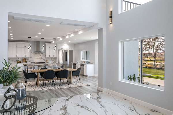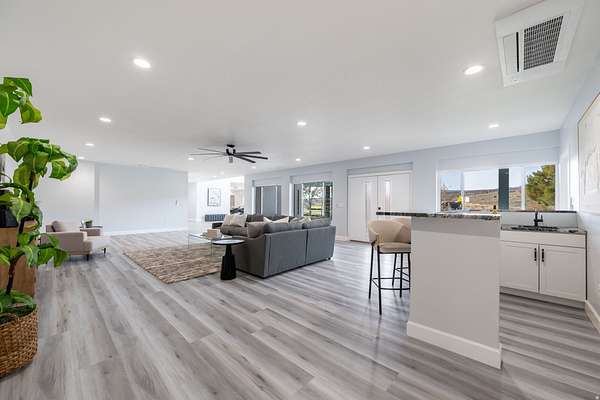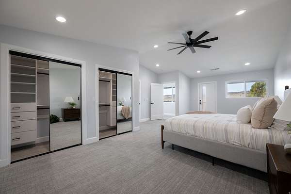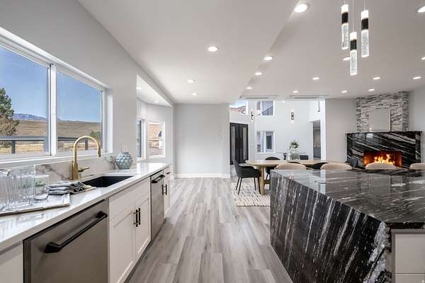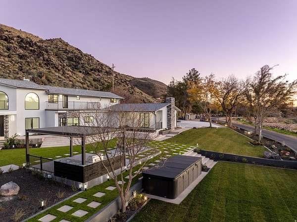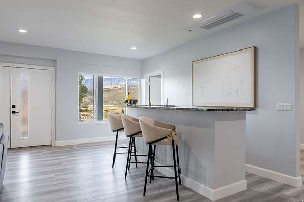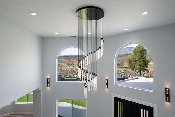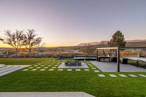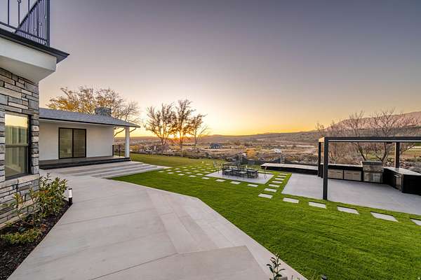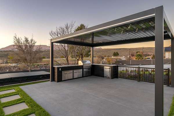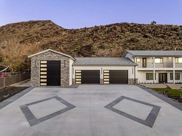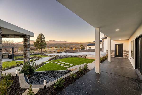 Set against a dramatic mountainside and protected by an additional parcel that preserves your views indefinitely, this one-of-a-kind estate delivers a rare combination of privacy, scale, and lasting value. Rebuilt from the ground up with over $1.2M invested into design, structure, and systems, the home offers a level of quality and intention that is immediately apparent. From the moment you arrive, the architecture makes a statement, clean modern lines, a grand entry, and soaring ceilings that create a sense of openness and light throughout the home. Inside, never before lived in living spaces are framed by oversized windows that pull the natural landscape into every room. The finishes strike a balance between contemporary elegance and livable comfort, with large-format flooring, custom lighting, and thoughtfully designed gathering areas that flow seamlessly from one space to the next. At the center of the home, the kitchen was designed to perform as beautifully as it looks. A bold waterfall island anchors the space, complemented by full slab surfaces, professional-grade appliances, dual ovens and dishwashers, and an oversized refrigeration setup. Whether hosting large gatherings or everyday living, the layout supports both function and presentation. A walk-in pantry, custom cabinetry, and integrated bar area complete the space. The home offers six spacious en-suite bedrooms, including a fully independent casita designed for flexibility. Each suite is finished with its own distinct character, featuring custom built-ins and refined, spa-like bathrooms. The casita operates as a true extension of the home, with its own kitchen, living space, entrance, and climate control, making it ideal for guests, extended family, or premium rental use. Additional living space is found in the finished lower level, offering the opportunity to create a theater, fitness studio, wine room, or entertainment area tailored to your needs. Outside, the property transitions into a private resort environment. Multiple gathering spaces, a covered pavilion, water features, and fire elements are positioned to take full advantage of the surrounding views. A premium swim spa and carefully designed landscaping complete an outdoor setting built equally for relaxation and entertaining. For those needing space beyond the home itself, the brand-new approximately 2,700 square foot garage delivers exceptional utility, with oversized doors, an RV bay, and room for collections, storage, or workshop use. Behind the design, the infrastructure has been fully modernized, including a 400-amp electrical system, complete rewire, new plumbing and sewer systems, multi-zone HVAC, tankless water heating, and high-efficiency insulation throughout. This is a property built not just for today, but for long-term performance and peace of mind. Positioned minutes from major access routes and some of Southern Utah's most sought-after destinations, including Zion National Park and Sand Hollow Reservoir, the home offers both convenience and connection to the surrounding landscape. This is more than a renovation, it is a complete rethinking of what this property could be, delivering scale, privacy, and design in a way that is increasingly difficult to replicate.