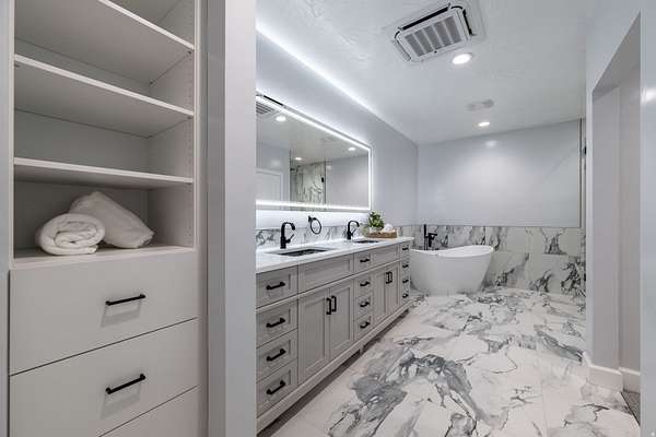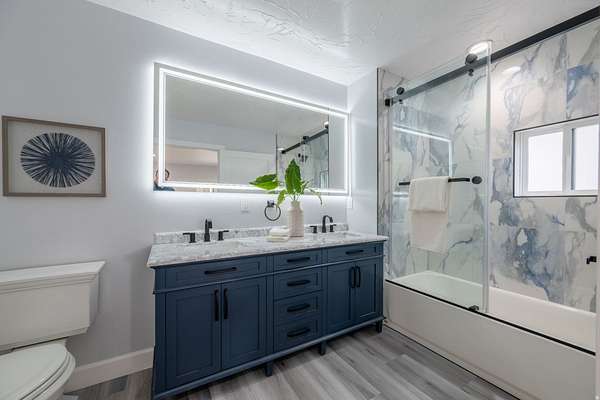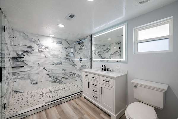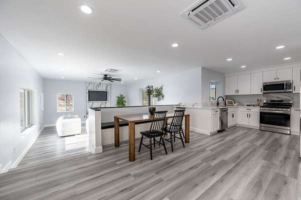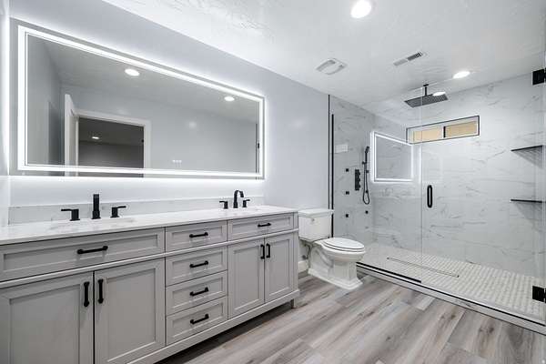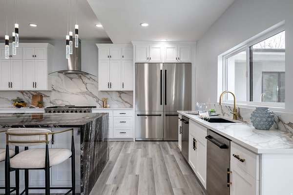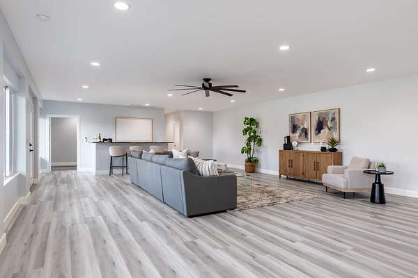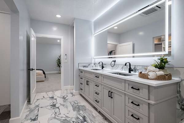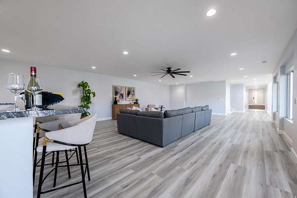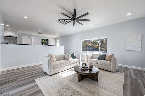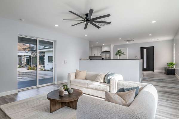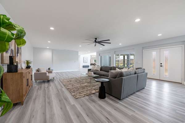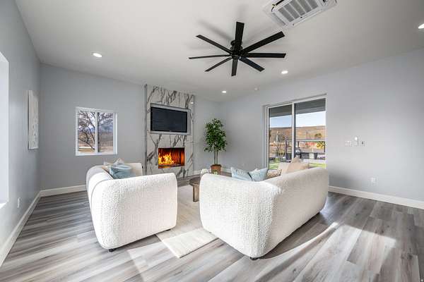 Set against a dramatic mountainside and protected by an additional parcel that preserves your views indefinitely, this one-of-a-kind estate delivers a rare combination of privacy, scale, and lasting value. Rebuilt from the ground up with over $1.2M invested into design, structure, and systems, the home offers a level of quality and intention that is immediately apparent. From the moment you arrive, the architecture makes a statement, clean modern lines, a grand entry, and soaring ceilings that create a sense of openness and light throughout the home. Inside, never before lived in living spaces are framed by oversized windows that pull the natural landscape into every room. The finishes strike a balance between contemporary elegance and livable comfort, with large-format flooring, custom lighting, and thoughtfully designed gathering areas that flow seamlessly from one space to the next. At the center of the home, the kitchen was designed to perform as beautifully as it looks. A bold waterfall island anchors the space, complemented by full slab surfaces, professional-grade appliances, dual ovens and dishwashers, and an oversized refrigeration setup. Whether hosting large gatherings or everyday living, the layout supports both function and presentation. A walk-in pantry, custom cabinetry, and integrated bar area complete the space. The home offers six spacious en-suite bedrooms, including a fully independent casita designed for flexibility. Each suite is finished with its own distinct character, featuring custom built-ins and refined, spa-like bathrooms. The casita operates as a true extension of the home, with its own kitchen, living space, entrance, and climate control, making it ideal for guests, extended family, or premium rental use. Additional living space is found in the finished lower level, offering the opportunity to create a theater, fitness studio, wine room, or entertainment area tailored to your needs. Outside, the property transitions into a private resort environment. Multiple gathering spaces, a covered pavilion, water features, and fire elements are positioned to take full advantage of the surrounding views. A premium swim spa and carefully designed landscaping complete an outdoor setting built equally for relaxation and entertaining. For those needing space beyond the home itself, the brand-new approximately 2,700 square foot garage delivers exceptional utility, with oversized doors, an RV bay, and room for collections, storage, or workshop use. Behind the design, the infrastructure has been fully modernized, including a 400-amp electrical system, complete rewire, new plumbing and sewer systems, multi-zone HVAC, tankless water heating, and high-efficiency insulation throughout. This is a property built not just for today, but for long-term performance and peace of mind. Positioned minutes from major access routes and some of Southern Utah's most sought-after destinations, including Zion National Park and Sand Hollow Reservoir, the home offers both convenience and connection to the surrounding landscape. This is more than a renovation, it is a complete rethinking of what this property could be, delivering scale, privacy, and design in a way that is increasingly difficult to replicate.