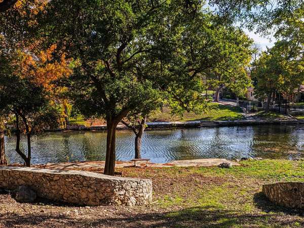 120' of Comal River Frontage. 1.91 Acres. New Braunfels' Next Iconic Riverfront Build. This isn't just a lot - it's prime Comal River real estate with the kind of water access people wait years to find. With 120' of crystal-clear Comal frontage, a riverside flagstone patio, and Island Privileges, this is your front-row seat to one of Texas' most legendary waterways. Sitting on 1.91 sprawling acres, the property brings all the Hill Country energy: mature shade trees, stone accents, natural terrain, and space to create something truly unforgettable. The level build site is ready for your vision, with partially cleared land, stone retaining walls, and multiple approach options already in place. The gravel drive, paved circular drive, and extended pathway pull you toward the river bottom - and into your future backyard view. This location wins: just 6 minutes from Downtown New Braunfels, and a 2-minute drive or easy golf cart ride to Landa Park. Sunrise walks with city views, afternoons on the river, evenings under the tree canopy - it's all right here. A Tuff shed keeps river gear, kayaks, lawn equipment, and weekend toys organized and out of sight. Clear water. Big trees. Nearly two acres to shape into whatever you've been dreaming up. This is where iconic Hill Country riverfront homes begin - now it's your turn to build one.