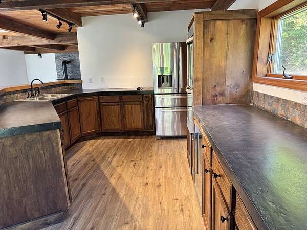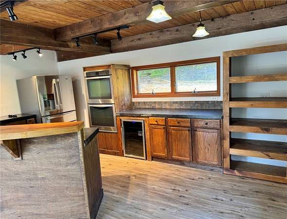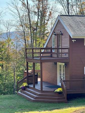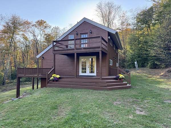 CUSTOM BUILT HILLSIDE CONTEMPORARY CEDAR SIDED HOME.....Nestled on 5+/- wooded acres in desirable sub-division just outside the Village of Delhi is this lovely multi level 3 bedroom, 2.5 bath move in ready home. Large contemporary kitchen with concrete counter tops, stainless appliances and breakfast counter gives way to a generous dining/living room with french doors, floor to ceiling windows and wood burning stove for cozy winter nights. From here access the super large deck that wraps around to the front of the house and offers a sunny spot to enjoy lazy summer days. Also at this level is 1 bedroom and a full bathroom. A family room/den/ office is located at the second level with access to an upper level deck from which you can capture the hill top views and starry night skies. Moving down the hall you will find a primary bedroom with en-suite bathroom, full shower and soaking tub and large closet space with skylight. The 3rd bedroom, 1/2 bath with laundry hook up, office and possible work out/media room are all located at the basement level. Electric radiant heat at the basement level and electric baseboard heat throughout the upper levels of the house. Enjoy the expansive front and back yards which are ideal for play and simple garden enjoyment. Plenty of room for a vegetable patch or beautiful flower beds. In early spring you will find wild ramps hiding in the wooded areas. Some recent improvements include fresh paint inside and out including decks, kitchen and bathroom upgrades, new floors at the 1st & second levels and partially at the basement level. There is lots to love here.....the light filled spaces, the expansive decks with lovely seasonal views, the privacy, and the close proximity to downtown Delhi with year round farmers market, supermarket, shops, cafes, galleries and so much more.