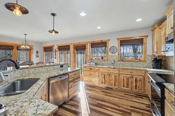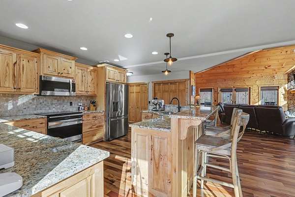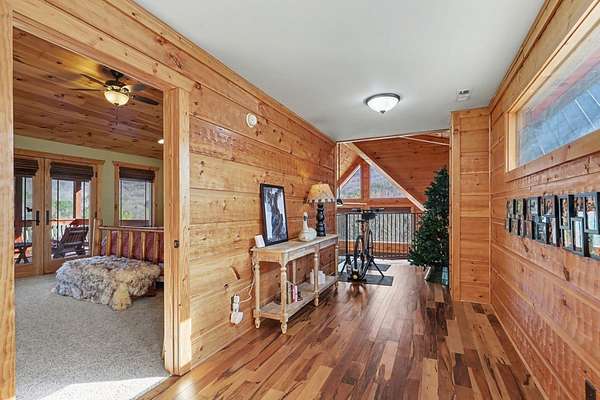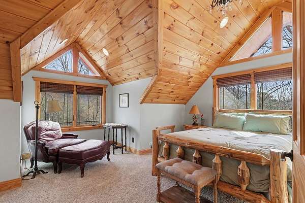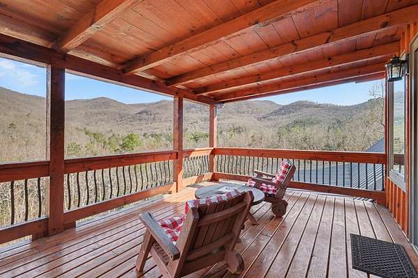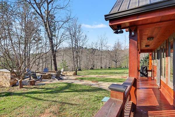 Welcome to your PRIVATE MOUNTAIN RETREAT on 21.35 breathtaking acres with PANORAMIC MOUNTAIN VIEWS in every direction. As you follow the newly engineered and paved driveway, the road gently winds through the trees before opening to this stunning LODGE-STYLE CABIN perfectly positioned to capture the beauty of the NORTH GEORGIA MOUNTAINS. This 4BR/3.5BA home blends RUSTIC CHARM with QUALITY CRAFTSMANSHIP, featuring BRAZILIAN PECAN HARDWOOD FLOORS, HAND-HEWN SIDING, and a FLOOR-TO-CEILING STONE FIREPLACE. Expansive ANDERSEN WINDOWS in the living room fill the home with natural light and showcase the incredible views. The kitchen offers CUSTOM HICKORY CABINETS, GRANITE COUNTERTOPS, and space to gather. The MAIN-LEVEL PRIMARY SUITE includes private access to the COVERED WRAPAROUND PORCH—perfect for morning coffee or evening sunsets. Upstairs features two GUEST SUITES and a spacious BONUS ROOM that can serve as a 4TH BEDROOM, office, studio etc. Outdoors, enjoy ATV TRAILS, ABUNDANT WILDLIFE, and a custom 20-FOOT STONE FIRE PIT area ideal for entertaining under the stars. DEEDED ACCESS to a PRIVATE 11-ACRE MOUNTAIN LAKE adds to the lifestyle this property offers. Additional features include a NEW METAL ROOF, NEW HVAC SYSTEMS, WHOLE-HOUSE GENERATOR, and PAVED ACCESS. Located in a NATURE CONSERVANCY for REDUCED TAXES. Offered FULLY FURNISHED. This is more than a home—it's a MOUNTAIN LIFESTYLE. Great INVESTMENT.