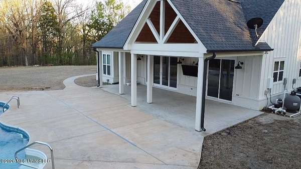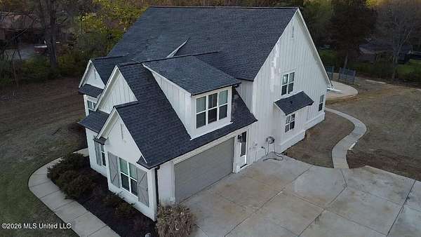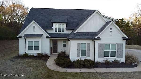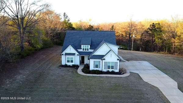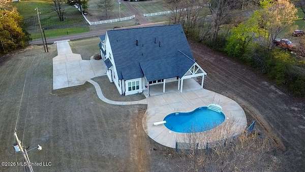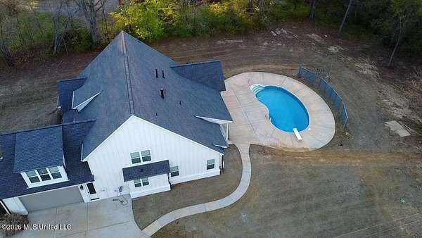 Beautiful custom-built modern farmhouse on 1.60 acres, offering over 3,200 heated square feet with 4 bedrooms and 3.5 bathrooms. From the moment you arrive, the setting feels peaceful and welcoming, with a long, sweeping driveway that leads you right up to the home and adds to the sense of space and privacy. Inside, the open floor plan is warm and inviting. Gorgeous wood flooring flows through the main living areas. The spacious living room features built-ins and a fireplace, creating the perfect place to relax or gather. The kitchen is a true centerpiece, complete with a large island, farmhouse sink, gas range, custom cabinetry, and a walk-in pantry. The primary suite is a standout, offering a spa-like bathroom with a freestanding soaking tub, tiled shower, and double sinks. The oversized walk-in closet provides incredible space and functionality. Upstairs, you will find additional bedrooms along with a versatile bonus area that can easily be used as a second living space, media room, or home office. Step outside to your own private retreat. Enjoy the inground pool with diving board and a covered patio with TV hookup, perfect for quiet evenings or entertaining. Additional features include a 2-car garage, no HOA, and county taxes only. Built in 2022 and located in a USDA-eligible area.