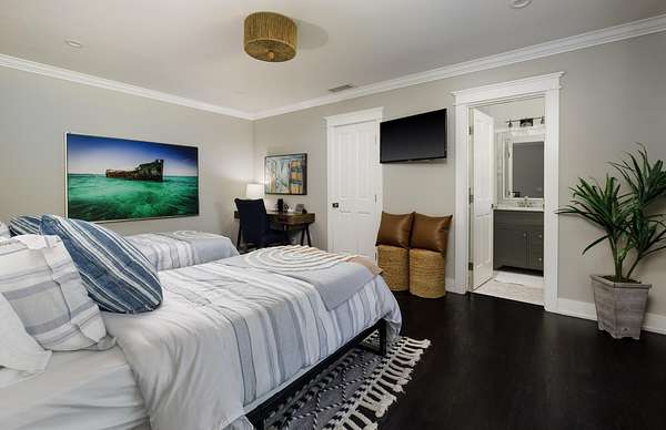 Impressive Santa Barbara Estate. Single level living with deep views over Santa Barbara & our Santa Ynez Range. Remodeled with eight in suite bedrooms, high ceiling family room, library, chef's kitchen & dining room. Potential dual living option. The 1.9 acre property is fully landscaped with mature trees and park like setting. More Mesa Beach and walking paths are just a few minutes walk away. Lifestyle living near the shore on your own 1.9 acre property offers a wonderful way to enjoy our shores. Property also has a Conditional Use Permit should one desire to use the property as an income opportunity. Events up to 100 people are allowed under the current CUP. The property can also be purchased with the neighboring 10 acres that have been used as Hidden Oaks Golf Course. One of a kind.