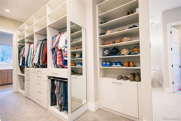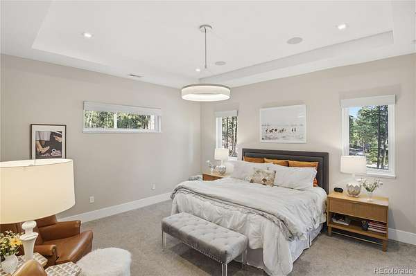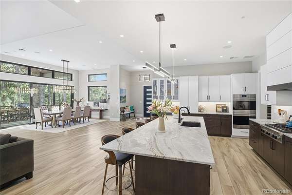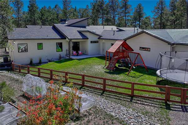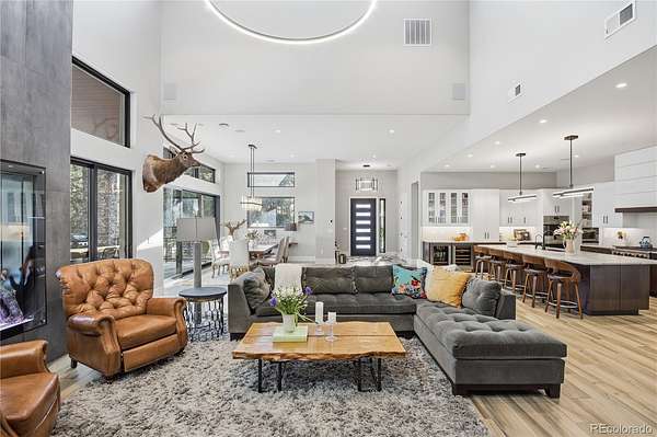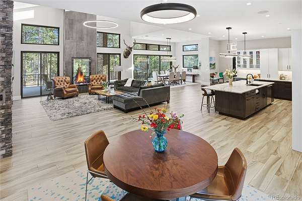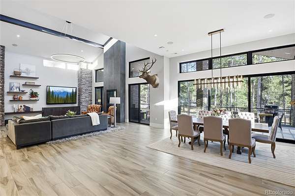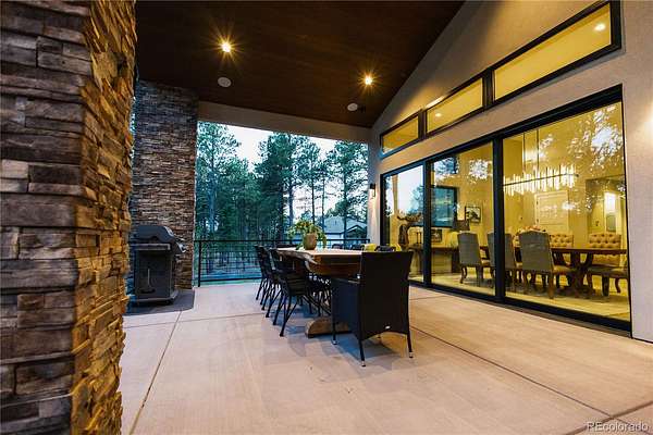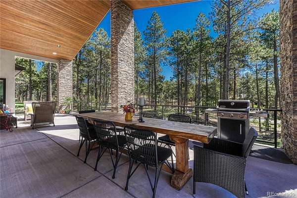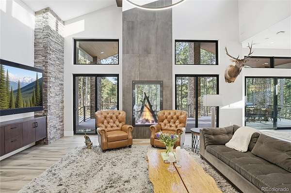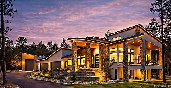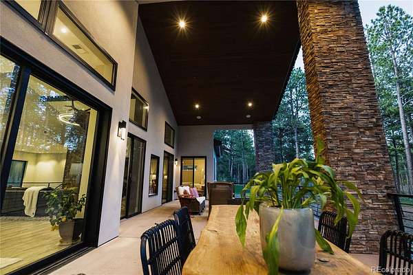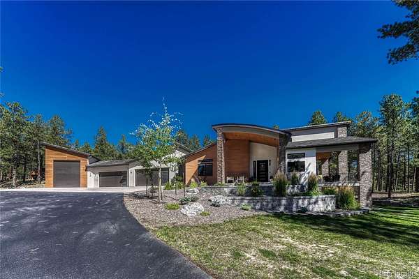 Discover a home where luxury meets livability in one of Colorado’s most sought-after communities—High Forest Ranch. Nestled on 2.6 private, wooded acres, this custom Mountain Modern masterpiece offers the perfect balance of elegant design and elevated function. From the moment you step inside, you’re welcomed by clean architectural lines, soaring ceilings, rich textures, and curated finishes that speak to a refined yet relaxed lifestyle. At the heart of the home is a chef’s dream kitchen featuring Wolf, Sub-Zero, and Cove appliances, a generous island, leathered marble countertops, and a hidden pass-through pantry for effortless hosting. Entertain with ease in the open-concept living and dining spaces, then step onto the expansive covered deck with a DaVinci two-sided fireplace and a built-in Control4 sound and media system—ideal for unforgettable indoor/outdoor gatherings. 6 spacious bedrooms/bathrooms, there’s room for everyone. The Primary retreat is your personal sanctuary, complete with a luxurious spa bath, oversized walk-in shower, custom California Closet, private study, & a dedicated laundry suite with folding station. The walk-out lower level is an entertainer’s haven, offering a large family room, stylish wet bar, home gym, and a craft/playroom designed to inspire. Outside, relax in the 7-person hot tub, enjoy the fenced yard with pet access, or explore the charming treehouse built for imagination. The oversized, heated 6-car garage is a rare gem, designed to accommodate vehicles or a Class-A RV with 50-amp power, floor drains, hot water sink, and a workbench zone. Extras include a snowmelt system for the front porch, Trimlight permanent holiday lighting, powered shades, dual whole-house humidifiers and air purifiers, Culligan water systems, a finished vault and storage area, and 2nd laundry. This is more than a home—it’s a lifestyle built for those who value luxury, nature, and unforgettable memories. Come see what Colorado living is truly about!