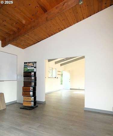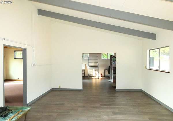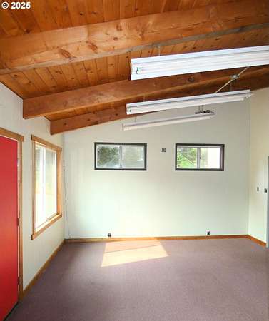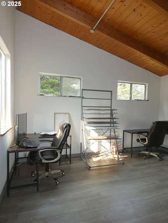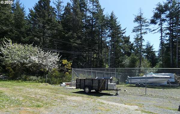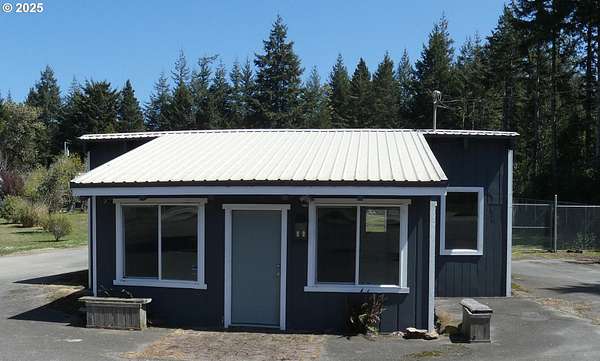Hard to find "Mixed Use" zoning, with excellent building sites and established commercial setting at Highway 101 end of the property. Property is "RC" (Rural Center) zoned for mixed residential and commercial use. 1.82 lot with newly updated 869 SF building with tall ceiling and three large, connecting rooms. Has paved parking all around the building with a tall, two-section, front/back billboard sign in front. In years past, the previous owners formerly had a storefront that sold artisan items crafted from locally sourced myrtlewood, and the work was in the adjacent lot (also for sale) shops where handcrafted items were made for decades, and the store was a repeat stop for many travelers. In back of the building is an 80'x160' chain-link fenced area with rolling gate, that another previous owner used as an outdoor storage business. This lot already has electricity and owner will allow temporary use of outdoor water spigot until new owner puts in well (time-frame negotiable). The larger portion of the property is set away from the office and highway out front and it has a cleared area with building sites that feels very peaceful and private, surrounded by trees and native plants, including productive wild berry bushes. There is also a productive, heirloom apple tree on the property. Located in Bandon's rural, Laurel Grove community, and just a little more than a half mile S of Bandon Crossings golf course and short distance to many beach access points and not far from scenic Bandon town, marina and boardwalk.