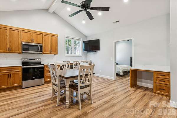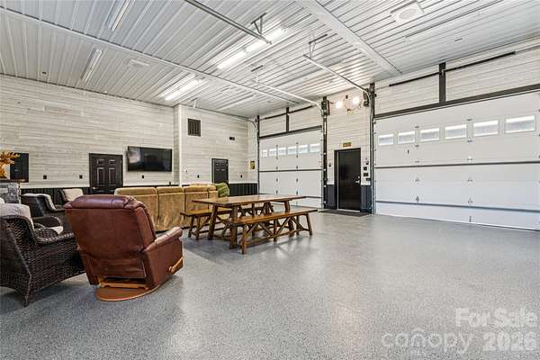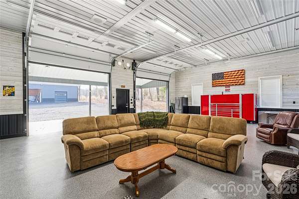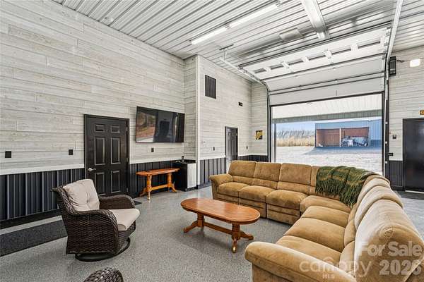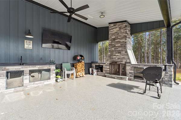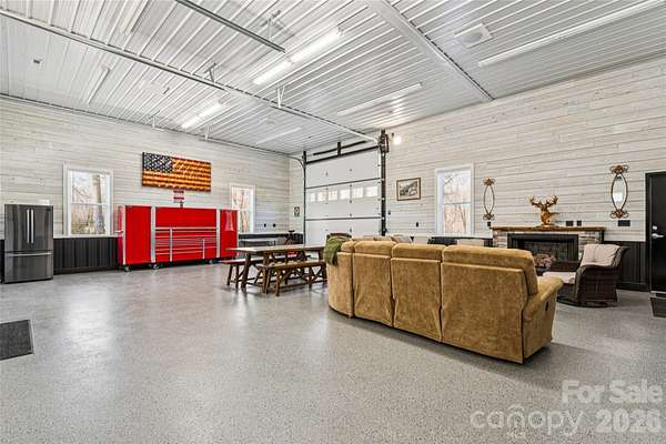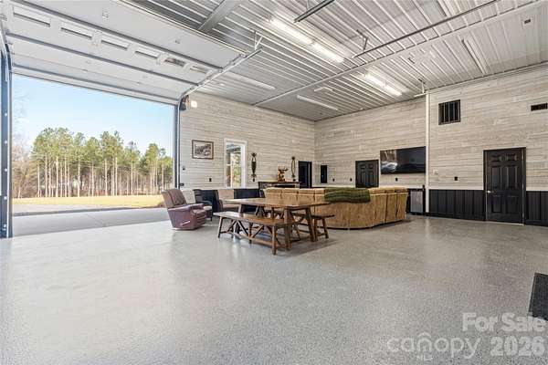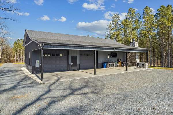 A custom-built home, wrapped in Everlast siding designed to feel timeless and solid. The house sits proudly on a hill, overlooking seven acres of peaceful countryside. In the front yard, mature pine trees frame the home, adding privacy and that quiet, "you've arrived somewhere special" feeling as you pull in. The yard is beautifully kept-lush, open, and intentional-blending manicured spaces with the natural flow of the land. No box is left unchecked as this home was built with 2x6 inch studs and completely insulated with spray foam insulation not only in the home but also in the attic; which is heat and cooled with the rest of the home. The home features a full camera monitoring system as well. Calling all entertainers! The garage and flex space is both practical and unique, featuring a drive-through design with doors at both the front and the back, making it easy to move throughout while experiencing indoor-outdoor living at its finest! A complete surround-sound system lets you enjoy your favorite music inside and outside. An additional garage space and carport area add storage space at the back of the property. The back of the existing home opens to a welcoming patio with a functioning stone fireplace that anchors the space. This area is perfect for gathering with family and friends. The crackle of fire, the open land, and the quiet country surroundings make this home feel like a private retreat-equal parts refined comfort and peaceful rural living!