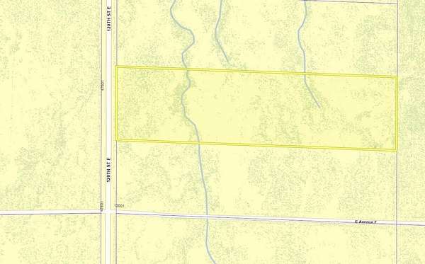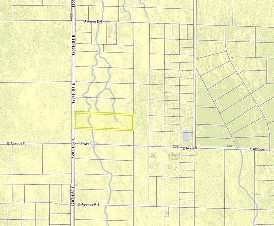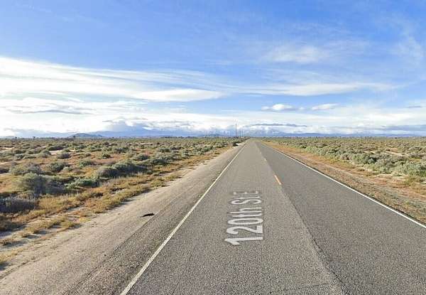 Est $293/mo9.9 acre lot with 335 feet of paved frontage on 120th St E. Power is about 330 feet to the south at 120th and Ave F. There are a few ranch homes in the area. The zoning is A21 for agriculture, animals, and a home. APN 3310-012-010.