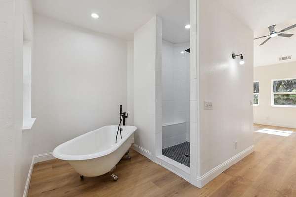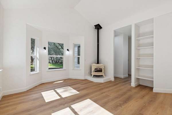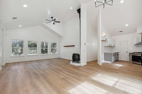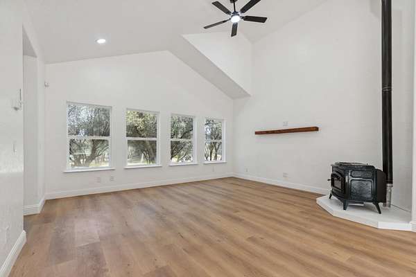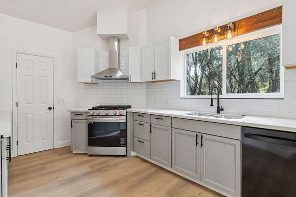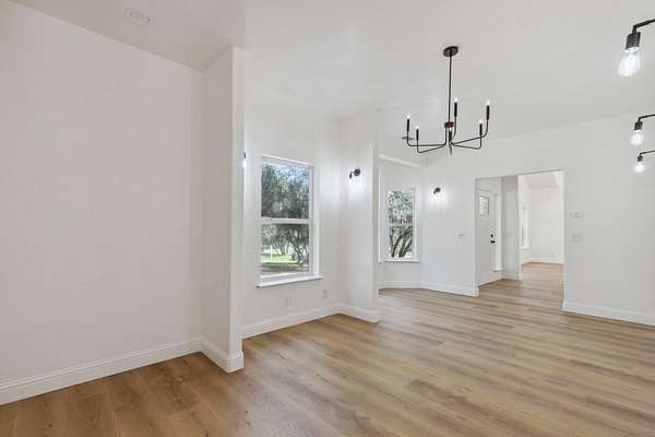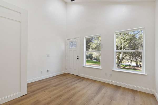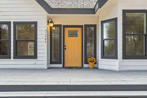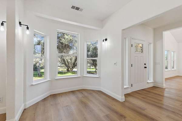 This beautiful home is nestled in a peaceful community in Coarsegold, just off Highway 41 behind the Chukchansi Casino and adjacent to Indian Lakes. The abundant natural light and soaring ceilings create an impressive welcome as you enter through the front door. To the left, a spacious living area flows seamlessly into the dining room and the newly remodeled kitchen. The kitchen features brand-new appliances, countertops, backsplash, and a walk-in pantry. Just beyond the kitchen is a private bedroom with a half bath and its own separate entranceideal for multigenerational living. On the right side of the home, you'll find a versatile open space perfect for a library or office, bathed in natural light. The main bedroom is located at the far end of the house and boasts an extra-large walk-in closet ready for your personal touch. The en-suite bathroom includes a freestanding tub and an oversized walk-in shower. The property is uniquely situated between two seasonal streams, with a waterfall at the rear. A large deck graces the entryway, perfect for summer evenings, while an enclosed area at the back offers a cozy retreat on rainy days. The home also benefits from a PPA solar lease, enhancing its energy efficiency.