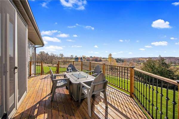 Luxury awaits in this rare custom rambler set on 3 beautifully landscaped acres. Designed for effortless one-level living, the wide-open floor plan is filled with natural light, with a wall of windows framing picture-perfect, private views. The stylish kitchen features stainless steel appliances, quartz countertops, and a spacious walk-in pantry, flowing seamlessly into the dining area with access to the deck--perfect for entertaining or quiet evenings outdoors. The main level offers both a welcoming great room with a gas fireplace and an additional living room, providing flexible spaces to gather or unwind. Three main-floor bedrooms include a private primary suite with a full bath and walk-in shower. The expansive lower level offers an incredible opportunity to add instant equity by finishing to suit your needs. Outside, enjoy professionally designed landscaping with retaining walls and a built-in fire pit, all set against stunning views. Tucked into a small, peaceful community yet just minutes from everything Somerset has to offer, this exceptional property is truly one of a kind and a must-see.