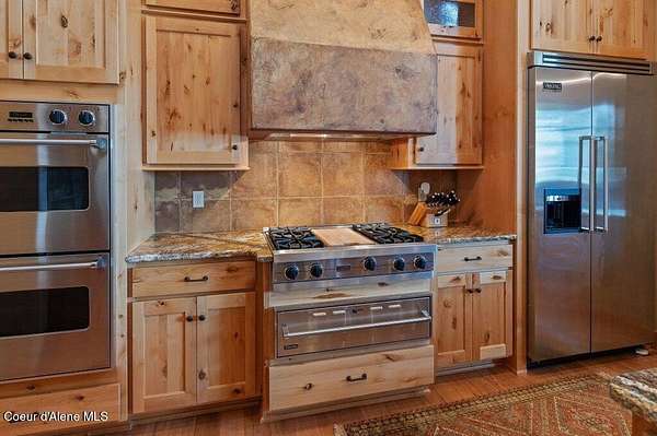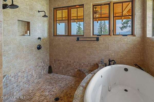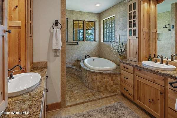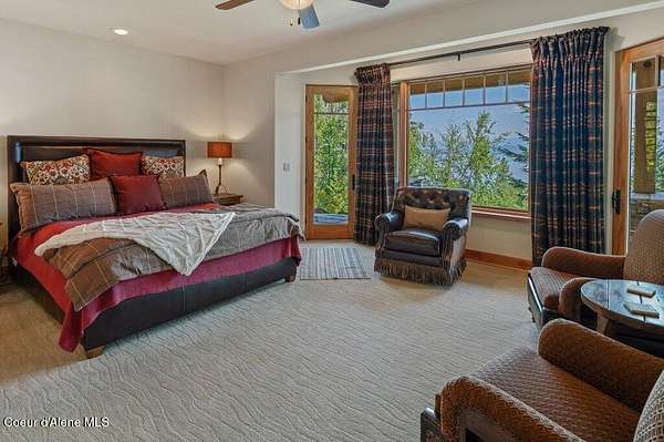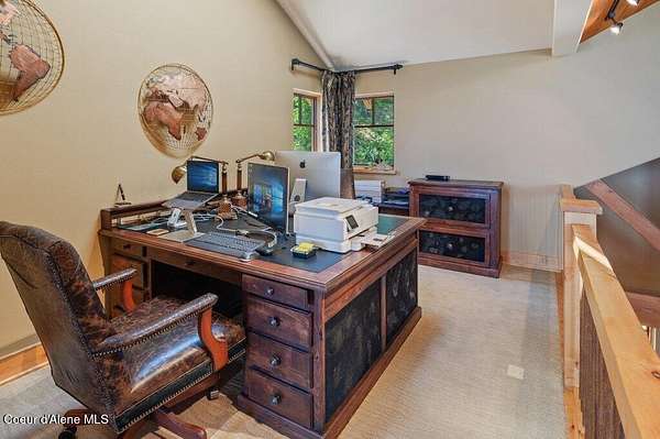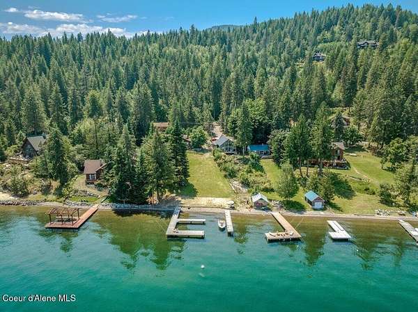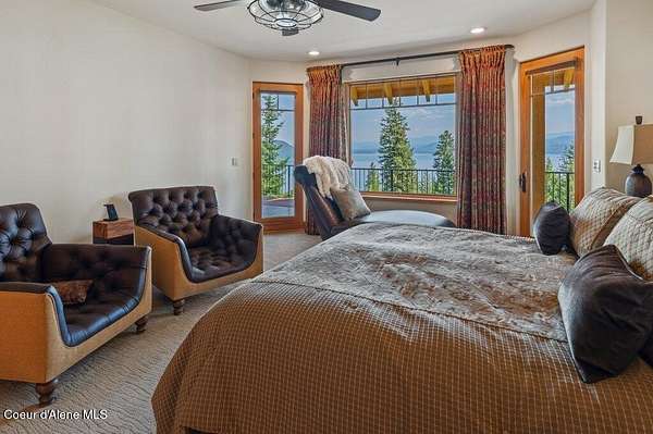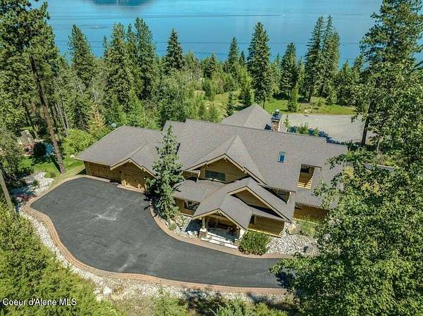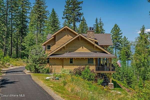 Perched high above Lake Pend Oreille in the exclusive, gated enclave of Stillwater Point, this extraordinary estate offers a rare combination of privacy, scale, and panoramic beauty. Set across two separate parcels totaling 5.6 acres, the property provides both an exceptional homesite and the flexibility of an additional adjoining lot--ideal for future expansion or simply preserving the surrounding open space. Spanning approximately 6,600 square feet of living space, the residence is designed with timeless mountain elegance and showcases a thoughtful three-level layout featuring 5 bedrooms and 6 bathrooms. The main floor is anchored by a luxurious primary suite and expansive living areas that seamlessly connect to outdoor decks overlooking the lake and mountains. The lower level is built for entertaining, featuring a spacious secondary living area, full bar, and wine cellar, along with two guest bedrooms. Upstairs, two additional bedrooms offer comfort and privacy, as well as a dedicated office--perfect for working remotely while taking in the surrounding natural beauty. Every detail reflects exceptional craftsmanship--from rich timber accents and natural stone finishes to curated lighting and high-end appliances in the chef's kitchen. Two striking stone fireplaces add warmth and architectural presence, enhancing the home's inviting atmosphere. Indoor and outdoor living blend effortlessly, with multiple spaces designed to gather, relax, and take in the sweeping views. As one of only a handful of homes within Stillwater Point, ownership includes access to a private sandy beach and dock on Lake Pend Oreille. The community also features a charming, recently renovated beach house complete with a bathroom--an ideal lakeside retreat for entertaining or relaxing by the water. Located just minutes from Bottle Bay, offering a marina and lakeside dining, as well as Sandpoint and Schweitzer Mountain Resort, this offering captures the essence of refined mountain living in one of North Idaho's most sought-after settings.