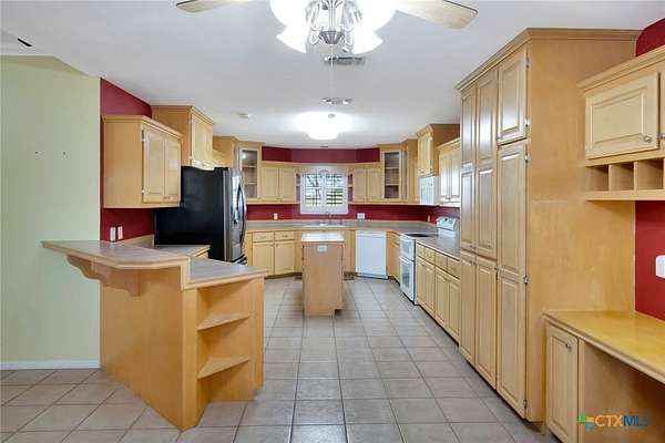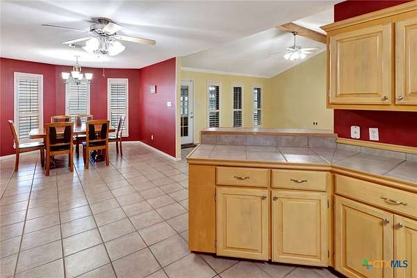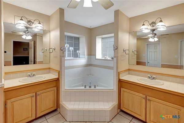 - Breakfast Bar, Ceiling Fans, Double Vanity, Jetted Tub, Kitchen Dining Combo, Kitchen Family Room Combo, Kitchen Island, Open Floorplan, Pantry, Pull Down Attic Stairs, Separate Shower, Split Bedrooms, Tile Counters, Tub Shower, Walk In Closets, Window Treatments