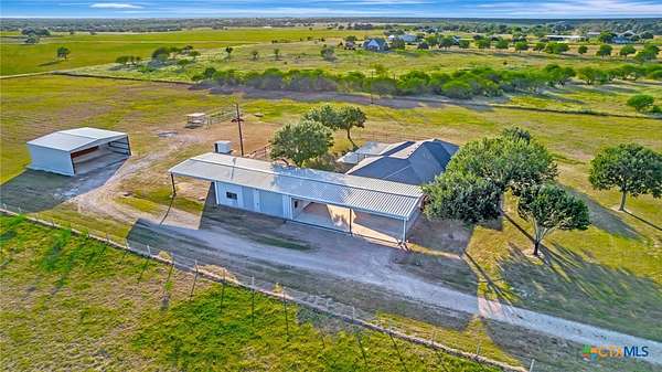 Experience the best of both worlds with this 11.15-acre retreat just outside the city limits of Victoria, TX-close enough for convenient access to schools, shopping, and dining, yet far enough to enjoy peaceful country living. This inviting 3-bedroom, 2.5-bath home features a dream-sized kitchen perfect for cooking and gathering, along with warm tile and wood flooring throughout. Spend your evenings relaxing on the spacious covered patio, soaking in the quiet surroundings and wide-open views. The land offers improved Tifon 85 Bermuda pasture, ideal for livestock, horses, or simply room to roam. A 30x40 metal shop is complete with a kitchen area, two roll-up doors, and additional covered area at the back that provides plenty of space for projects, storage, or hobbies. You'll also find an additional three sided metal storage barn perfect for keeping tractors, trailers, boats or RVs. Don't miss this country charmer with city convenience.