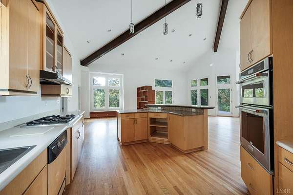 Enjoy stunning views in this single floor 3 bed 3 bath contemporary home designed by Craddock Cunningham Architectural Partners. Nestled in a private Blue Ridge mountain setting, this unique property features a beautiful natural stone portico and two stone fireplaces along with custom cabinetry throughout. Several decks, including one off of the master bedroom, maximize the surrounding views in addition to a long wooded driveway for the ultimate privacy. Other features include vaulted ceilings, a great room with an abundance of natural light, a granite island for entertaining, a breakfast nook with custom window seating, a laundry room with plenty of storage space, large pantry, and a functional mudroom designed especially for the gardener. Don't miss this thoughtfully planned home that blends beautifully with surroundings and offers natural and high quality materials throughout.