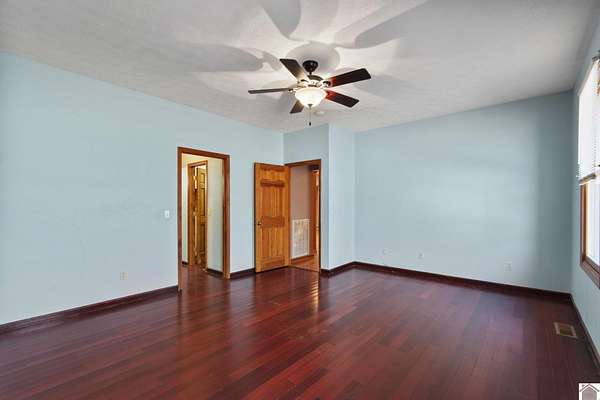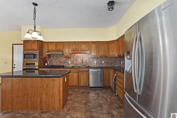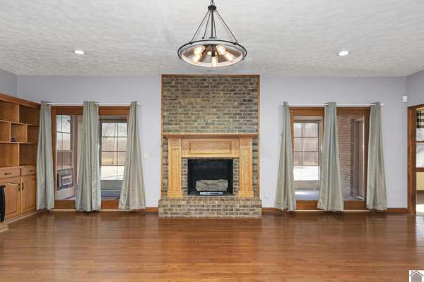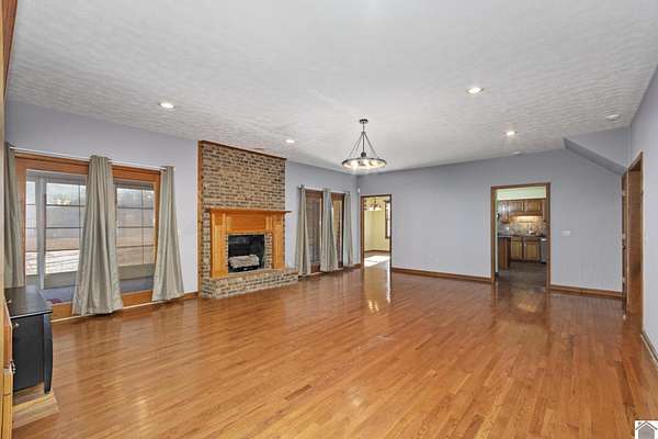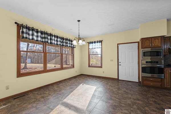 CHARMING BRICK HOME ON 2+ ACRES WITH IN-GROUND HEATED POOL!!! Discover this beautiful custom built 3 bedroom, 3 1/2 bath home nestled on 2.19 acres of serene countryside close to Lake Barkley. The spacious floorplan offers a welcoming formal living room, formal dining room, eat-in kitchen with all appliances to stay, family room with ventless fireplace, primary en-suite with walk in closets, sunroom and 1/2 bath all located on the main level. Upstairs you will find 2 additional bedrooms with private baths, office, MASSIVE unfinished storage area. Attached is a 1 car garage with utility room. Also features a detached 2 car garage, in-ground (heated) pool & pool house with 1/2 bath, natural gas and whole house generator. Located between Eureka campground and Buzzard Rock Marina. This rare find is truly a MUST SEE!! PRICED REDUCED $564,900