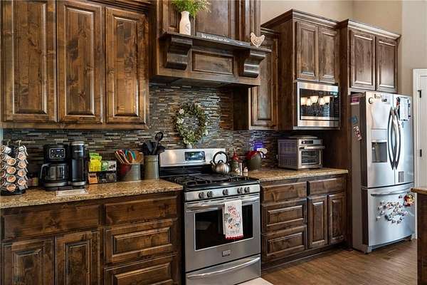 This charming, custom built home is nestled on sprawling 4-acres that have been cleared, offering a perfect blend of comfort and space. As you enter, you'll find a bright and airy living area that flows seamlessly into a beautiful kitchen equipped with stainless steel appliances, 2 pantries, and ample counter space. The dining area is perfect for gatherings and overlooks the picturesque landscape.