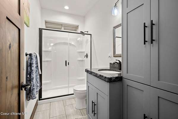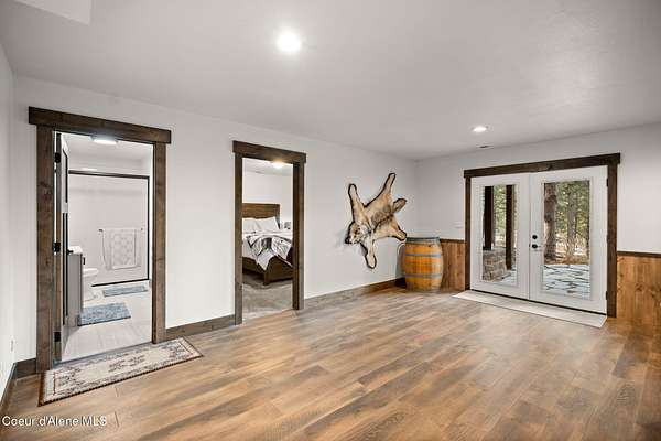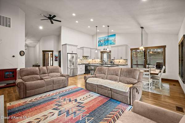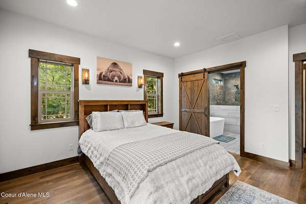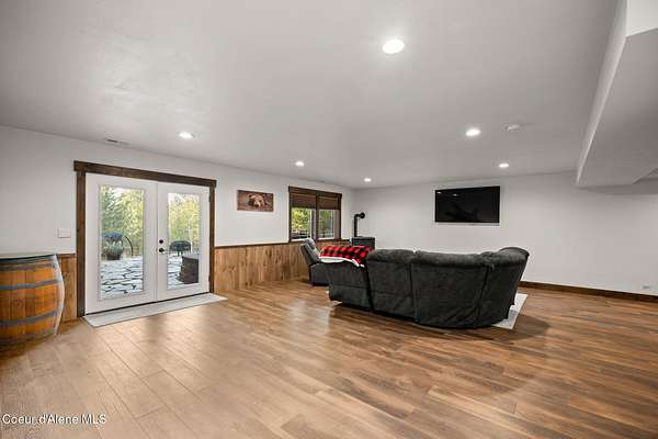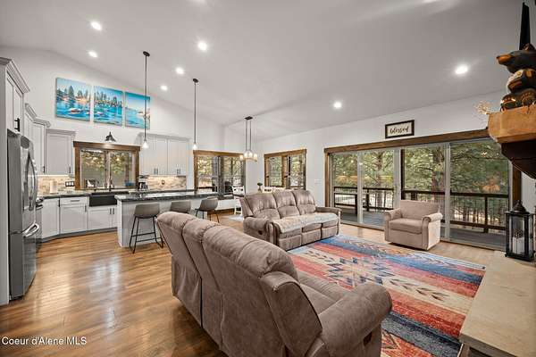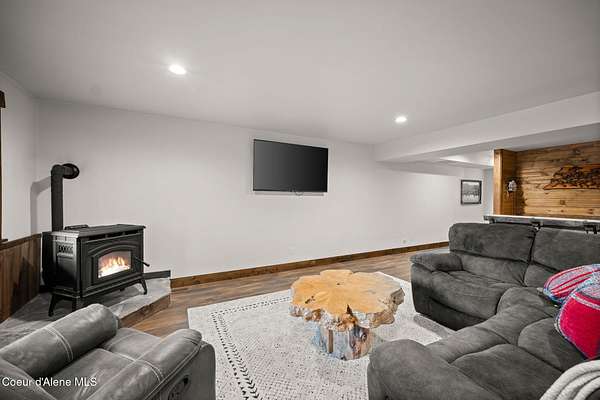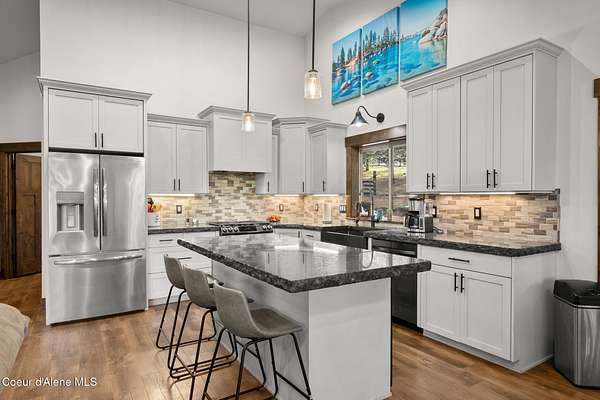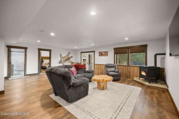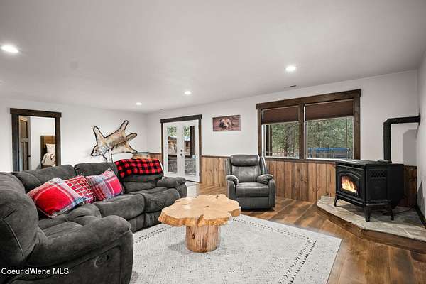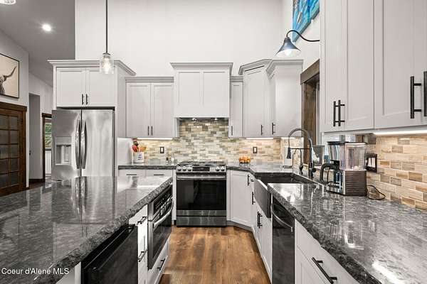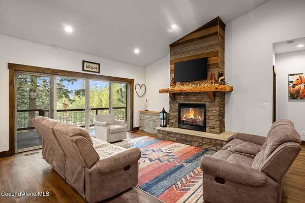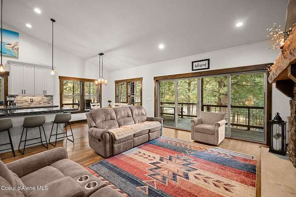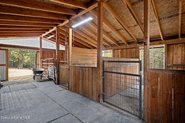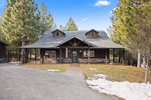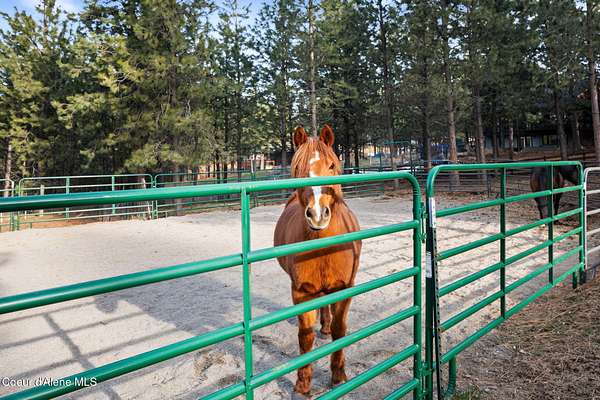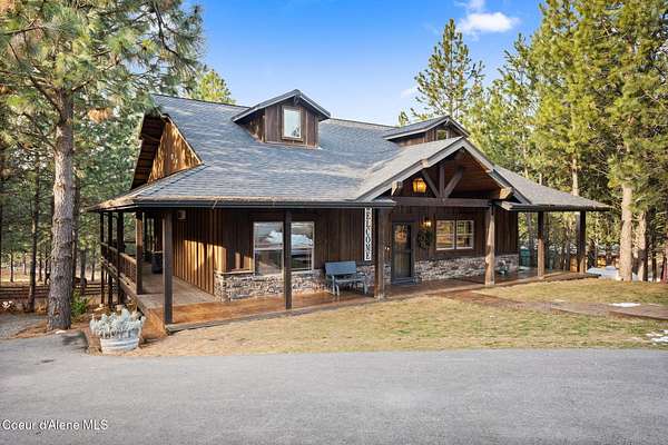 A Rare Custom Home on Private Acreage Near the Spokane River! Perched on 2.5+/- private acres just down the street from the Spokane River, this 2,750 sqft custom home sits at the end of a quaint, gated private road, offering a peaceful setting that's hard to find this close to town. Attention to detail is evident from the moment you arrive, with stacked stone accents, a wraparound porch, stamped concrete entry, and thoughtfully placed exterior lighting. Inside, the open-concept main level features large windows overlooking the acreage, LVP flooring, live-edge granite countertops, and a gas fireplace with stone surround that anchors the living space. The luxurious primary suite offers a spa-like retreat with a beautifully finished bath. Downstairs, a separate living area provides exceptional flexibility with a bar area, pellet stove, and an additional bedroom and full bathroom-ideal for guests or multi-generational living. The property is perfectly suited for animals and hobbies, featuring a 28x50 insulated shop with pellet stove and bathroom, a 24x30 barn with three stalls and hay storage, a riding arena, and pasture. Convenient secondary access from another private road leads directly to the barn and pasture. Combining privacy, functionality, and proximity to town, this is a truly rare opportunity. No HOA/CCRs.