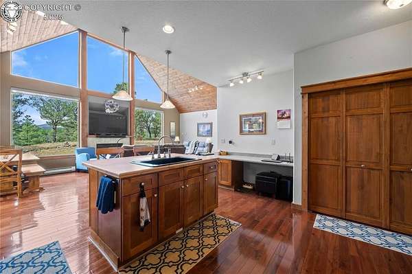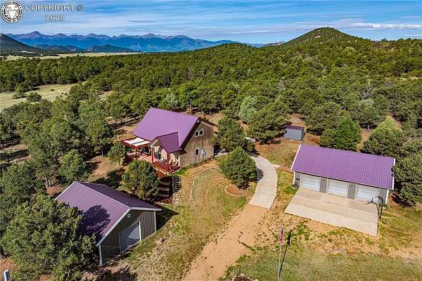 Discover refined Colorado mountain living in this custom-built masterpiece, set on nearly 5 fully mitigated acres in the scenic Glen Vista community. From the moment you walk in, the craftsmanship shines-exquisite finishes, cherry hardwood floors throughout, vaulted ceilings, and a gas fireplace with a stone hearth create a warm, elegant atmosphere. The open-concept layout and center island kitchen make everyday living and entertaining effortless, all while showcasing sweeping mountain views. Built with durability and ease in mind, the home features a stucco exterior, metal roof, and composite decking, plus fire mitigation already completed for added peace of mind AND the Generac, gas - whole house generator, too. A private detached studio apartment ADU offers its own bathroom and garage, making it perfect for guests, in-laws, or rental income. Need more space? You'll love the oversized 3-car garage, ideal for vehicles, tools, and Colorado toys. Located in Glen Vista, you'll enjoy year-round access, privacy, and the freedom of light community guidelines-all while being just minutes from the endless adventure of the Arkansas River Valley. This area is a haven for outdoor enthusiasts, with gold medal fishing, whitewater rafting, ATV trails, hiking, and climbing all close by. Plus, you're a short drive from the charming towns of Salida, Westcliffe, and Canon City, known for their art scenes, events, and small-town hospitality. Whether you're seeking a luxurious full-time home, a peaceful retreat, or an income-producing property, this one offers it all-style, function, and location.