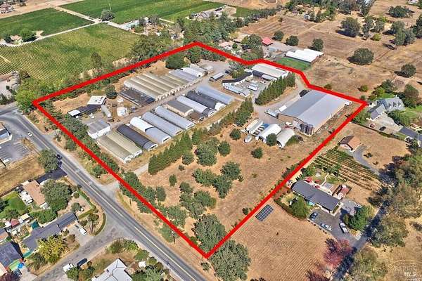 Rare opportunity to acquire a 10.5-acre agricultural operations campus zoned Diverse Agriculture (DA), featuring a 17,000 SF warehouse equipped with 12-18 ft clear height, four roll-up doors, and 3-phase power. The property also includes a 5,000 SF office building, several additional outbuildings, and existing greenhouse infrastructure, all fully fenced with three separate entrances. An additional building with great exposure at the corner of Irwin and Occidental offers its own entrance and parking and may have potential to be permitted for retail use. The corner location provides strong visibility and may be suitable for a farm stand, retail, or other ag-related commercial uses (buyer to verify with Sonoma County). The property features expansive yard space, providing flexibility for a wide range of uses including agricultural operations, nursery use, vineyard services, contractor yard, equipment storage, agricultural processing, or distribution. Conveniently located along Occidental Road in west Santa Rosa, the property offers easy access to Highway 12, Sebastopol, and the greater Sonoma County agricultural region.