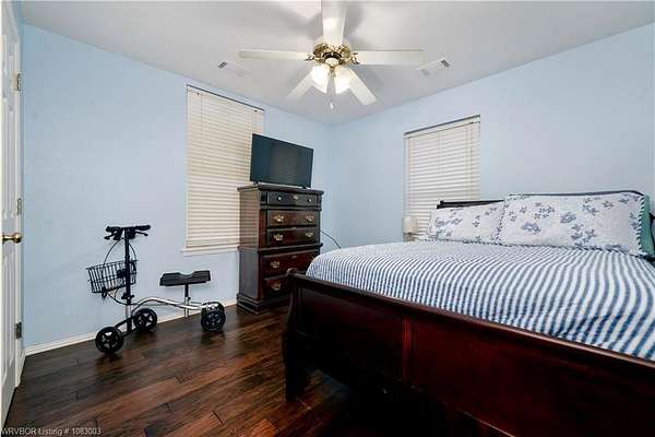 Est $1,747/moMove in ready! Sitting on over 2 beautiful acres, this alluring home features a white pipe fence and a gated entry, offering ample space both inside and out for entertaining friends and family. It features a large sunroom that opens to the patio and is surrounded by beautiful, large trees. The kitchen has oak cabinets with granite countertops. It also has hardwood flooring in the living area and bedrooms. If you're looking for an awesome home in an awesome location, this is the place for you.