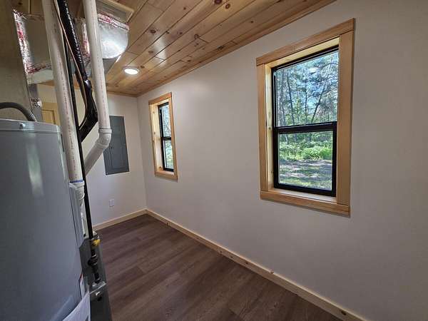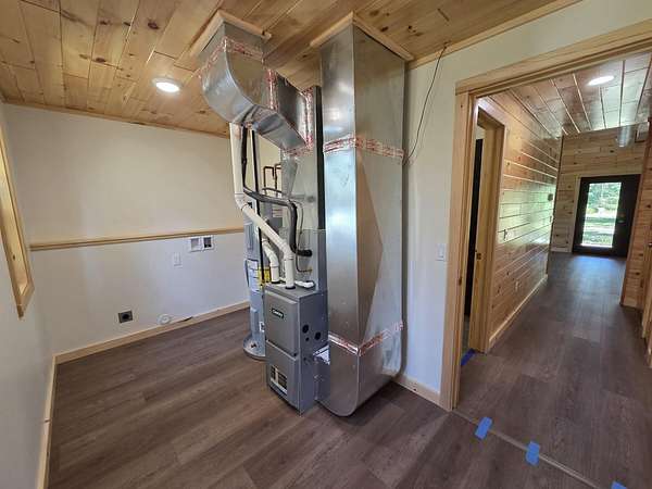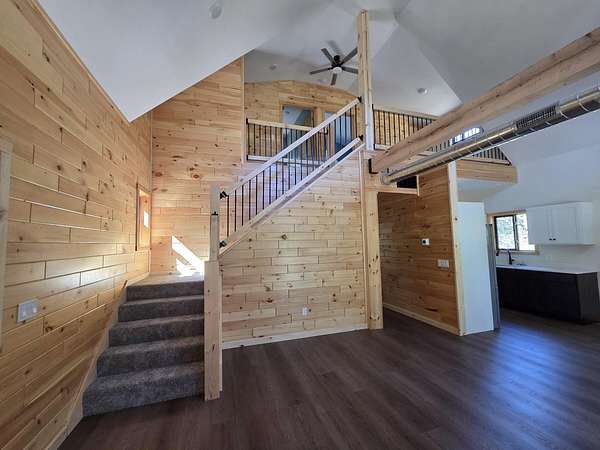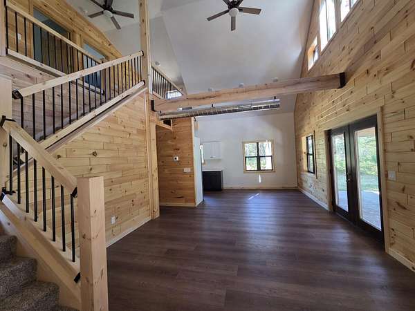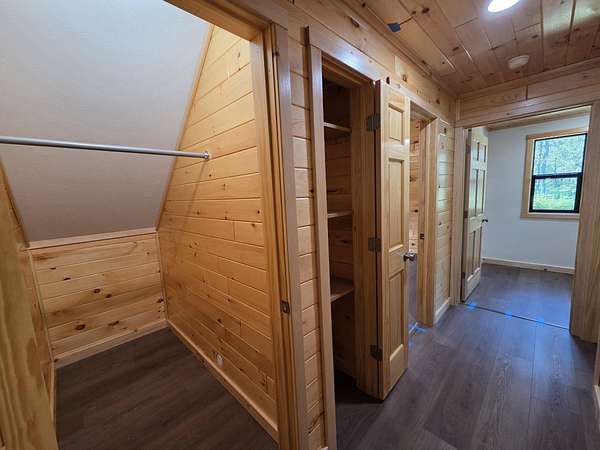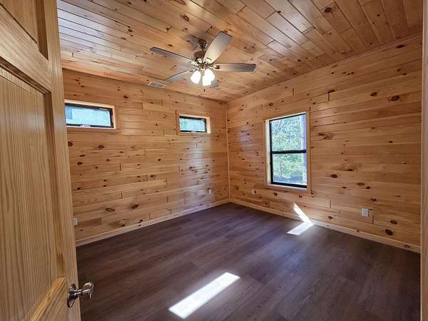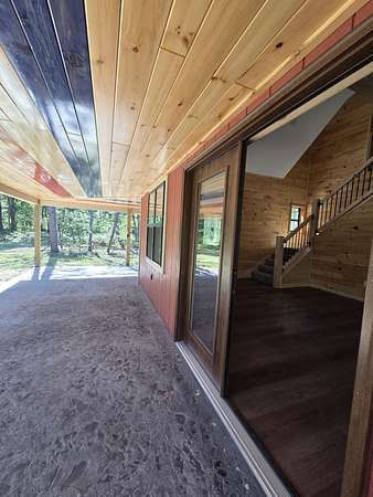 Unique, picturesque, quiet. What a cool place to call home! All of your friends will want your builder's number, but this one is one-of-a-kind. Three bedrooms, two baths, tongue-and-groove knotty pine throughout. Is it a cabin or a house? Fresh and new everything! Whirlpool appliances, energy efficient windows, soft-close full-wood cabinetry, hand-made trim, spray foam insulation, central air, and of course, that very distinctive covered porch with its eye-catching red, white and blue-stained ceiling. From the roof to the septic system, everything is new! Thoughtfully designed with main floor laundry and mechanical room. The drive coming in sets a storybook tone, nestled in the woods with lots of privacy. So, so pretty! Move in immediately and invite your friends for a visit -- lots of room for their RVs and campers. Public land across the street and trails are everywhere! Just a short drive to many lakes and rivers. Call for your showing today!