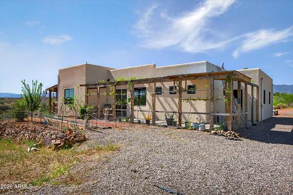 Perched atop 2.78 acres, this exceptional 2021-built residence offers breathtaking scenery and unmatched privacy, As you ascend the private drive, a sense of exclusivity unfolds, setting the stage for a truly remarkable living experience. This well designed 1,726 sq ft home features 2 spacious bedrooms and 2.5 beautifully appointed baths, wrapped in incredible scenery that can be enjoyed from multiple patios, perfect for sunrise coffee or sunset gatherings. Soaring 12-foot ceilings, wide hallways, and an open floor plan create an atmosphere of comfort, and space. Built with state-of-the-art roofing materials and upgraded insulation, this energy-efficient home offers exceptional year-round comfort with minimal utility costs. A private well supports lush landscaping and numerous fruit tree