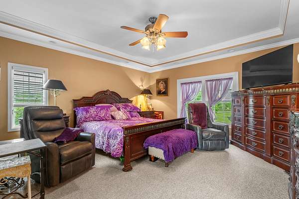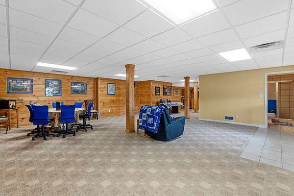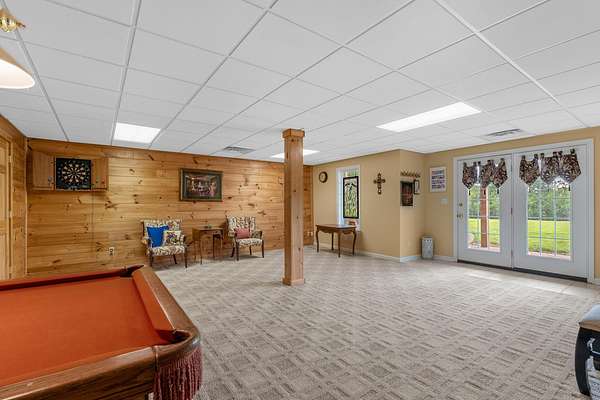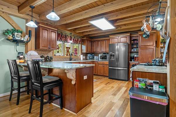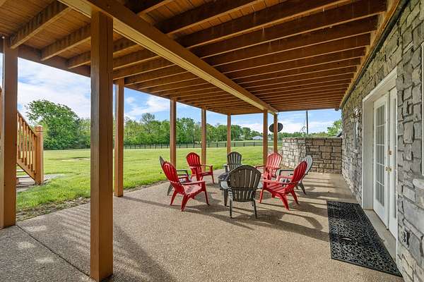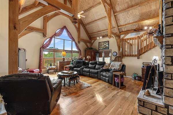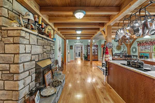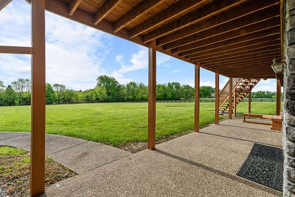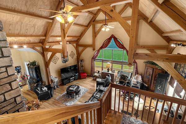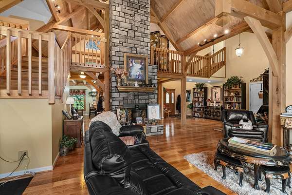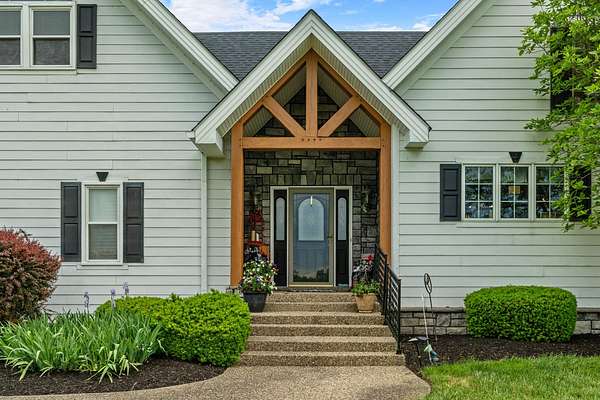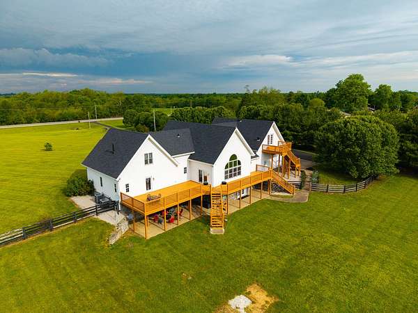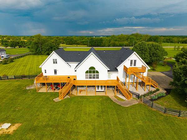 Stunning 6,964 Sq Ft Estate on 5 Scenic Acres in Coveted Shelby County, KY! Welcome to a custom-crafted masterpiece where timeless woodwork, cathedral ceilings, and luxurious living meet serene Kentucky countryside. Nestled on 5 private acres in highly desirable Shelby County, this extraordinary home offers comfort, space, and versatility across three beautifully designed levels. Upstairs, a full mother-in-law suite offers privacy and independence with its own private deck, bedroom, full bath, open concept kitchen-living area. The upstairs large cozy loft overlooking the main living space is a perfect gathering space. On the opposite side of the home upstairs you have two additional bedrooms and a private bathroom. Perfect for guests or multigenerational living. The main floor is the heart of the home, featuring a warm and inviting kitchen and dining area with wood beam ceilings, a spacious family room with a vent less double-sided fireplace, and a grand primary suite. The primary bedroom boasts a walk-in closet and a spa-like bath with a walk-in shower, garden tub, and its own double-sided fireplace. A large laundry room on the main level adds everyday convenience.. The walk-out basement is an entertainer's paradise with a full bedroom and bath, a pool table area, custom wet bar, and two sets of French doors that lead out to expansive patios. This fully egressed level offers flexible use for recreation, relaxation, or hosting. Enjoy peaceful views and outdoor gatherings on the beautiful decks located on each level an ideal blend of indoor comfort and outdoor living. All this, just minutes from shopping, dining, and top-rated hospitals combining country living with city convenience. Modern amenities include multiple high-speed internet options including AT&T Fiber available at the road, making it easy to work from home or stream seamlessly. This is more than a home it's a retreat, a gathering place, and a showcase of craftsmanship all in one, right in the heart of Kentucky horse country.
