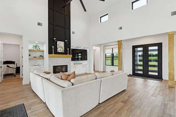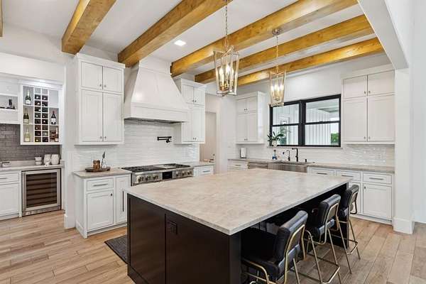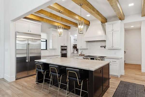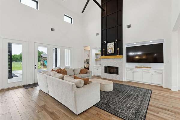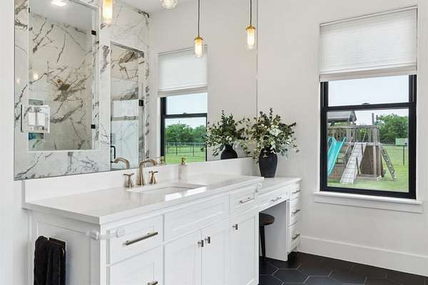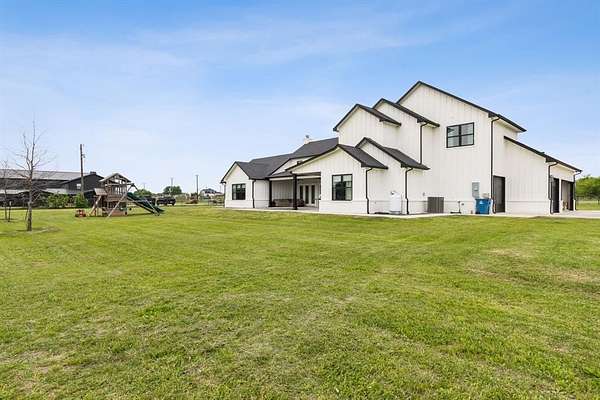 Step outside to a large covered patio overlooking fully fenced acreage — a blank canvas ready for your custom outdoor vision. A 3-car garage, gated entry, and timeless farmhouse architecture complete a property that is as functional as it is striking.