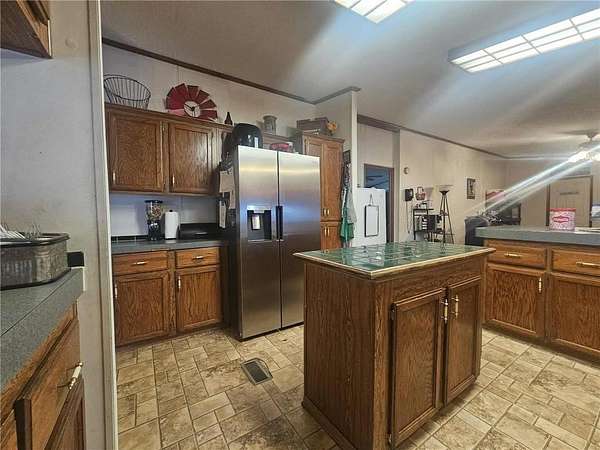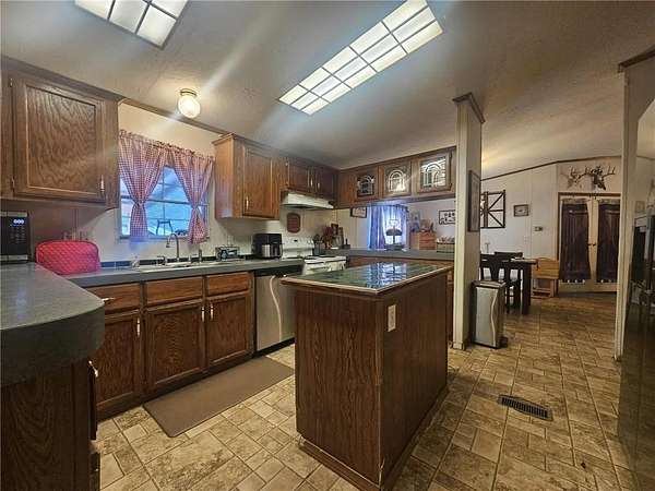 Spacious 4-bedroom, 2-bath manufactured home nestled on approximately 16 acres MOL. This property offers a perfect blend of comfort and functionality, featuring multiple outbuildings including animal barns, a shop, storage sheds, storm shelter and 2 RV hookups. With multiple pens and cross-fencing, the ample pastureland provides room for livestock, horses, or outdoor recreation. Inside, the home boasts an open floor plan with generous living space, a well-equipped kitchen, and comfortable bedrooms. Whether you're seeking a hobby farm, a homestead, or simply a quiet retreat with room to roam, this property delivers the space and amenities to fit your lifestyle.