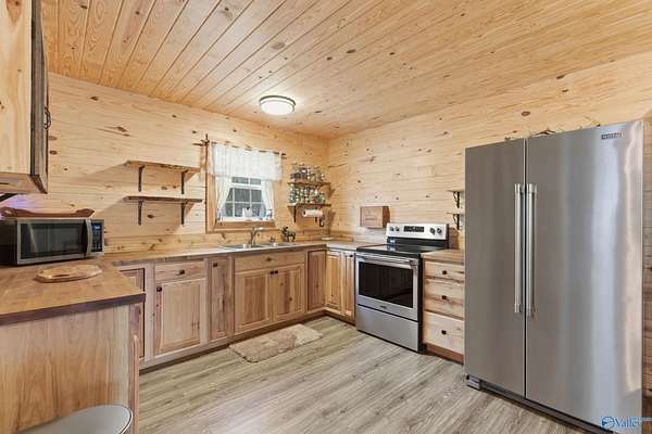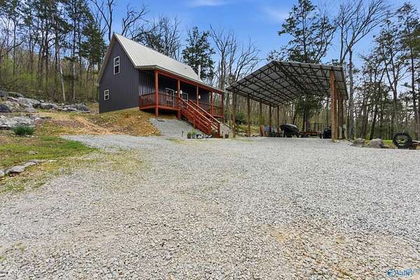 Tucked away on 8.6 secluded wooded acres near Cathedral Caverns, Guntersville, & Huntsville, this like-new one-of-a-kind 1BR/1BA retreat offers the perfect blend of privacy, nature, & character. The home reflects its natural surroundings & cozy cabin lifestyle with craftsmanship & upgrades. Enjoy creek, a seasonal waterfall view, & abundant deer & turkey already established on the land. Two deer stands convey with 2 prime hunting areas or spots for potential home build. All appliances remain, including washer, dryer, deep freezer, tankless H2O heater, & wood splitter. Property also features an RV carport with 50-amp full hookup-ideal for guests or extended stays. A true North Alabama escape.