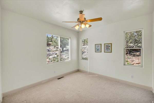Tucked away in the exclusive Pinion Hills community of Dammeron Valley, this secluded retreat offers an unparalleled level of privacy, surrounded by breathtaking natural landscapes and stunning views. This hidden gem is a rare find in Southern Utah, provided an ultimate getaway experience amidst a mesmerizing natural setting. Enjoy the benefits of cooler temperatures, open spaces and convenient 18 minute drive to town. The interior features 4 spacious bedrooms with 3 ensuite baths. Recent updates include a newer roof, energy-efficient solar system, updated appliances and fresh exterior paint ensuring a low maintenance lifestyle. This single level home is move in ready, featuring large windows that seamlessly frame the surrounding views